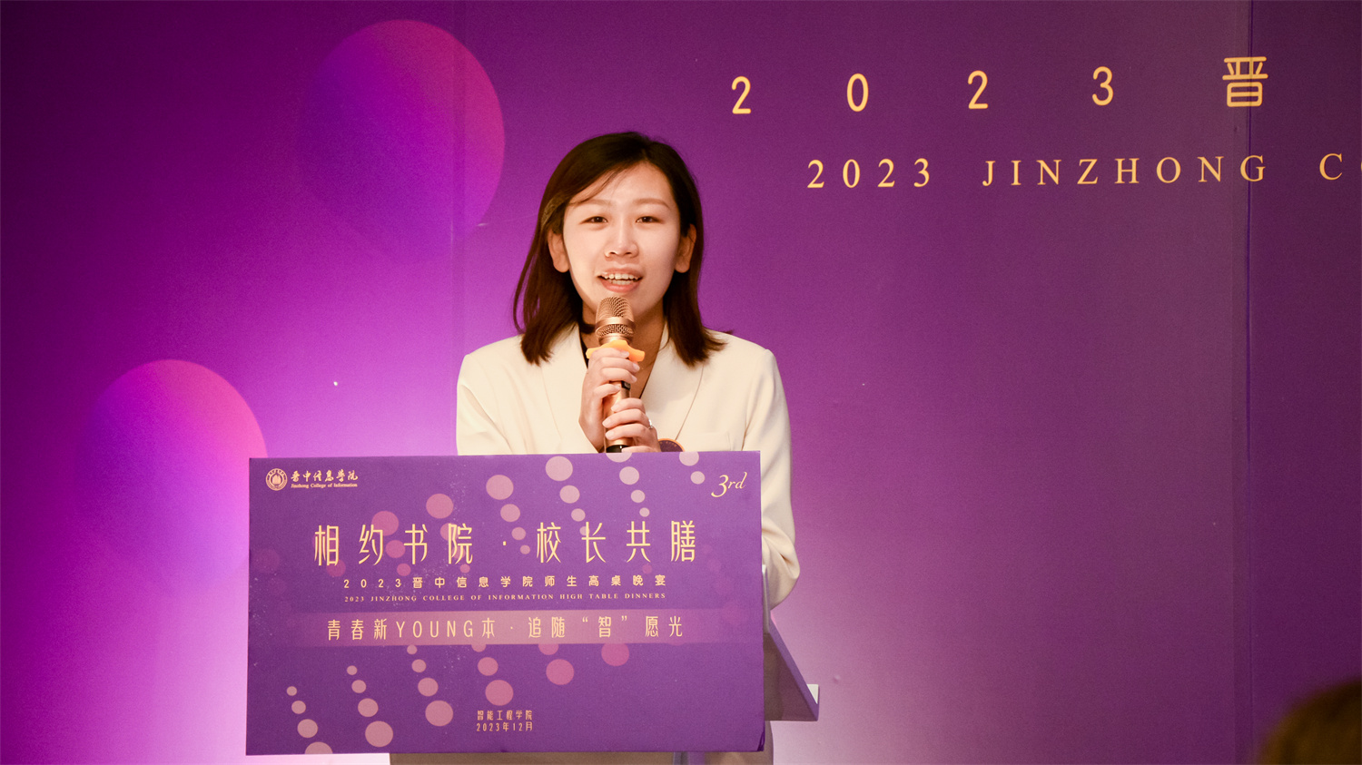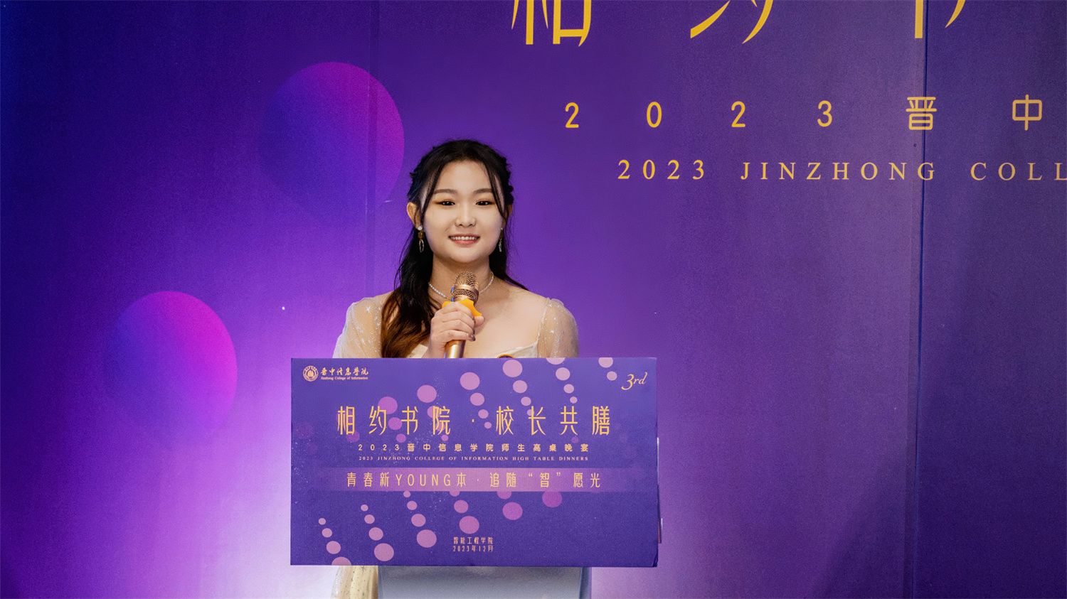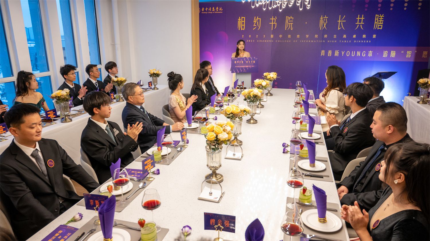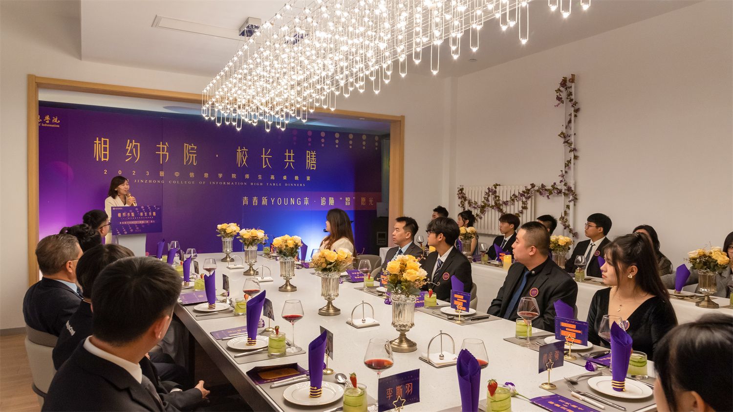 12月14日17:00,由书院部主办,智能工程学院承办的“相约书院·校长共膳”高桌晚宴于毣谷书院高桌晚宴厅拉开帷幕,校长与师生盛装出席,共赴“青春新YOUNG本,追寻‘智’愿光”晚宴,一同在曼妙的时光里共享浪漫的人间烟火。