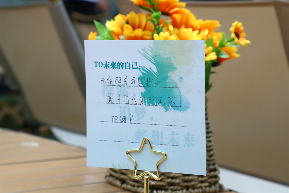 活动步入尾声,同学们坐在桌前用心地给未来的自己写下寄语。有的同学写道:“未来的我,愿你能不忘初心,坚持梦想,无论面对多少困难和挑战,都能保持那份热爱和执着。”有的同学则回忆起过去的点滴,在寄语中留下了温馨的话语:“未来的我,请记得那些与你并肩作战的伙伴们,他们是你人生路上最宝贵的财富。”每位参与同学都在用自己的方式,给未来的自己留下最真挚的祝福和期望。这些寄语不仅是对未来的承诺,更是对现在自己的鞭策。