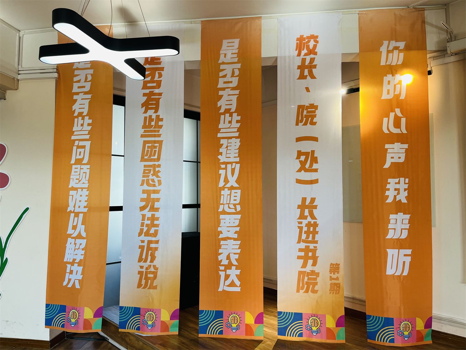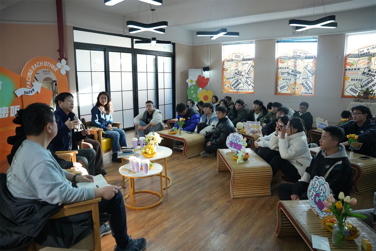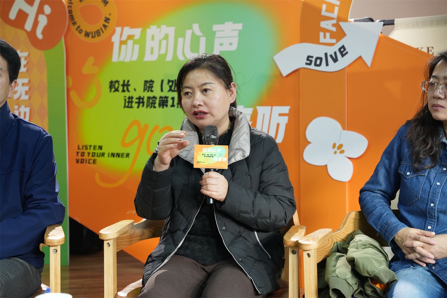 近期,山东电视台一档很火的栏目——《问政山东》引发了众多网友热议,节目现场连线,就群众急难愁盼的热点问题现场提问,由省市县各级领导干部现场问政、解决。12月4日下午,书院版《问“政”阿信》在无边书院职说空间A上演,根据一站式学生社区建设相关要求及《学校、部处、学院领导干部联系书院社区制度》相关文件精神,无边书院在职说空间A举办【校长面对面】第11期:“你的心声我来听”特别活动。活动邀请到晋中信息学院副校长傅永林教授,无边书院A栋楼长、淬炼·国际商学院院长牛晋霞,无边书院B栋楼长、淬炼·国际商学院学工院长范彦,学校物业服务公司办公室主任王家栋,学生资助管理中心主任、学生管理科科长张静就后勤生活保障、完满活动参与、奖勤助贷申请、学业生涯指导等多方面问题与同学们进行面对面深入交流,无边书院A栋、B栋、C栋学生“三长”代表及学生代表60人参与,以精准聚焦、高效回应的方式,“问‘政’阿信”,现场回应同学们“急难愁盼”的问题,真切传达学校对青年学生的关心与关爱。