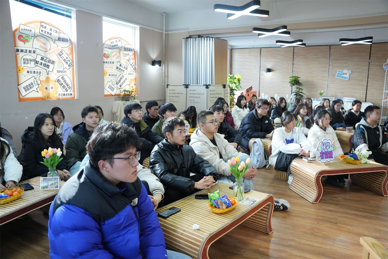 问题一:冬天宿舍洗澡实在太冷,学校后续是否有加装暖气或者调高热水器温度的举措?物业公司办公室主任王家栋老师回应道,洗澡冷确实是现实问题,但增加暖气片涉及供水管道、供热站的增加和扩容,需要在学校大面积工程翻新的情况下方可实现。学校会积极改进,在现有条件下提高供暖温度,争取给同学们一个温暖的冬天。
