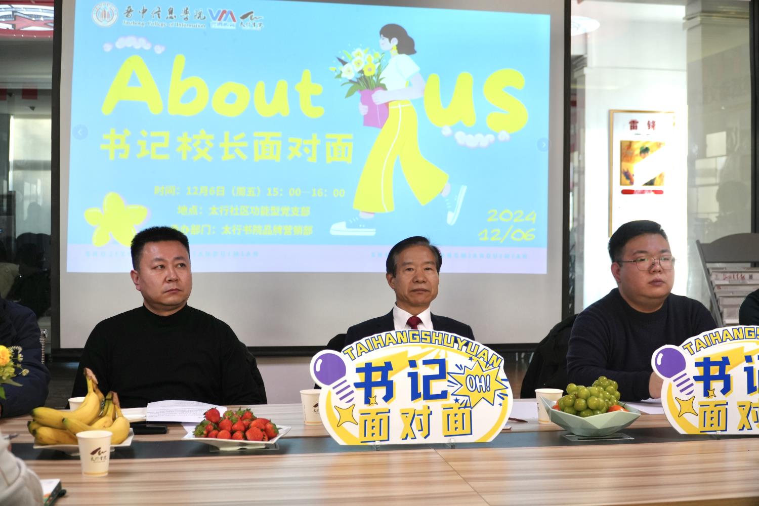 此次“书记校长面对面”活动不仅深入学生内部,为同学们搭建了一个真诚交流的平台,更是一次心灵的慰藉和日常的关怀。学校将继续秉承“以学生为本”的理念,常态化开展此类面对面交流活动,逐步构建更加完善的师生交流平台体系,积极拓展育人空间,着力打造全方位育人环境,确保每一位同学都能在学校找到归属感,收获成长与进步。太行书院将积极推动“一站式”学生书院社区综合管理模式建设与发展,让“家文化”的理念真正落到踏实处、深入学子心。