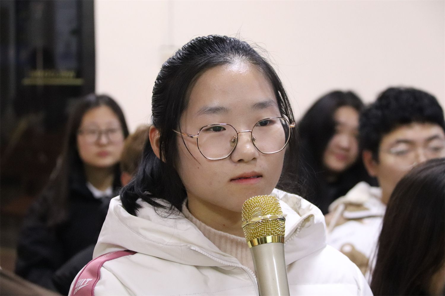 梁欣雨同学提出自己想参加学科竞赛却不知如何得到相关专业老师的指导和帮助,教务处武艳芬老师回答道学科竞赛名录可向所在二级学院教务秘书进行咨询,也可关注教务处官网发布的赛事信息。确定参赛后可自主联系相关专业教师进行指导,也可向教务处提出需求,教务处协助联系相关教师。