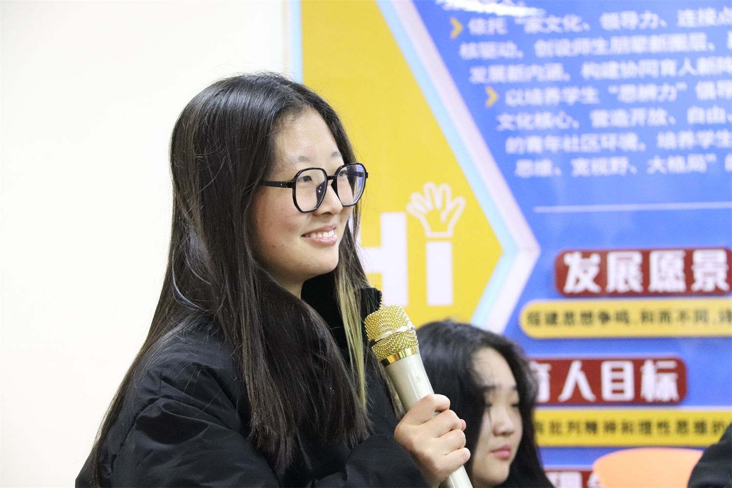 活动现场,箕城书院综合办主任李孟孟老师化身同学们的“民意代表”向现场各位领导老师提出了学生们集中关注的关系成长体验与切身利益的问题与困惑。