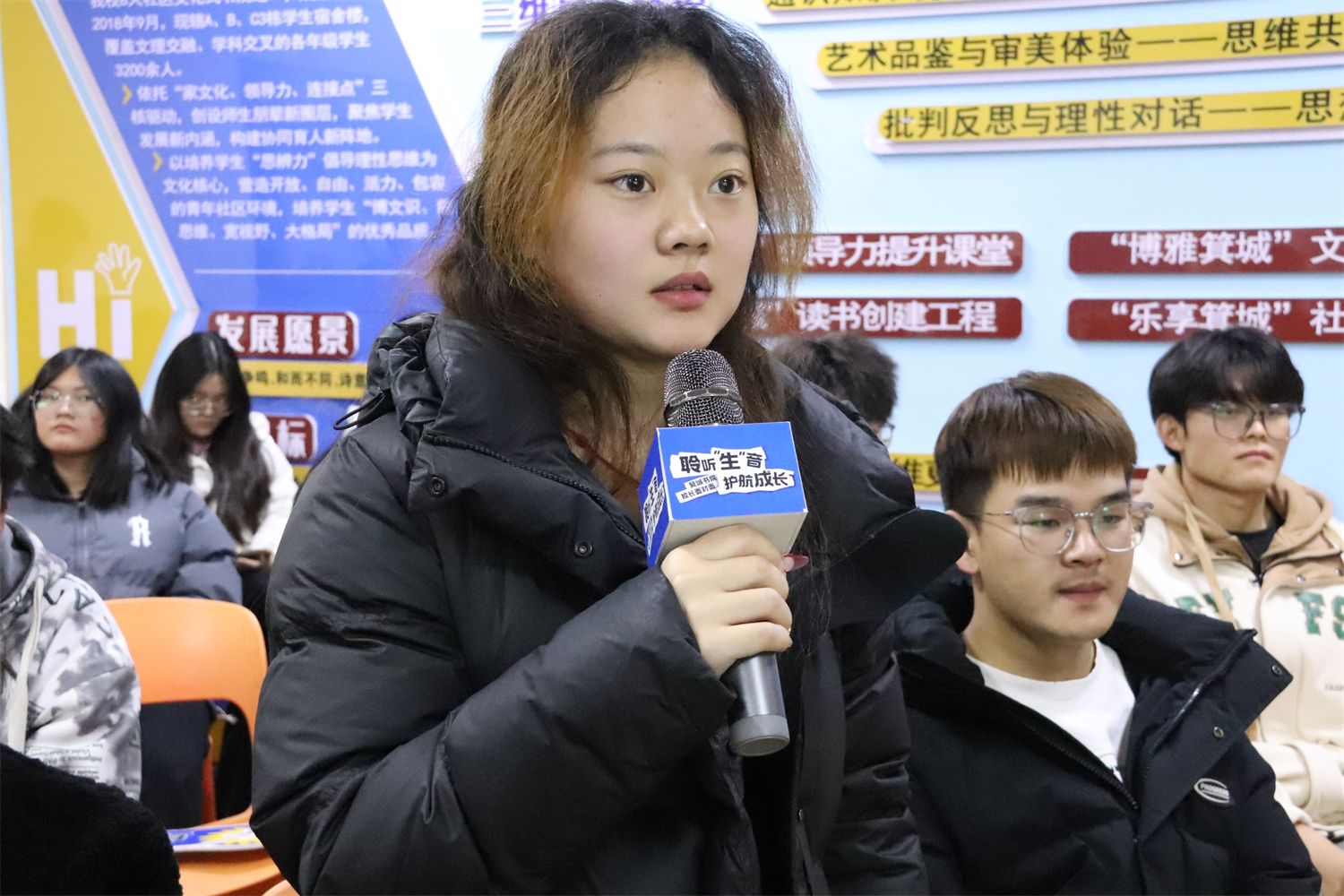 在现场提问环节,同学们围绕学科竞赛、生活设施、学习空间等方面诉说着自己的困惑和需求。