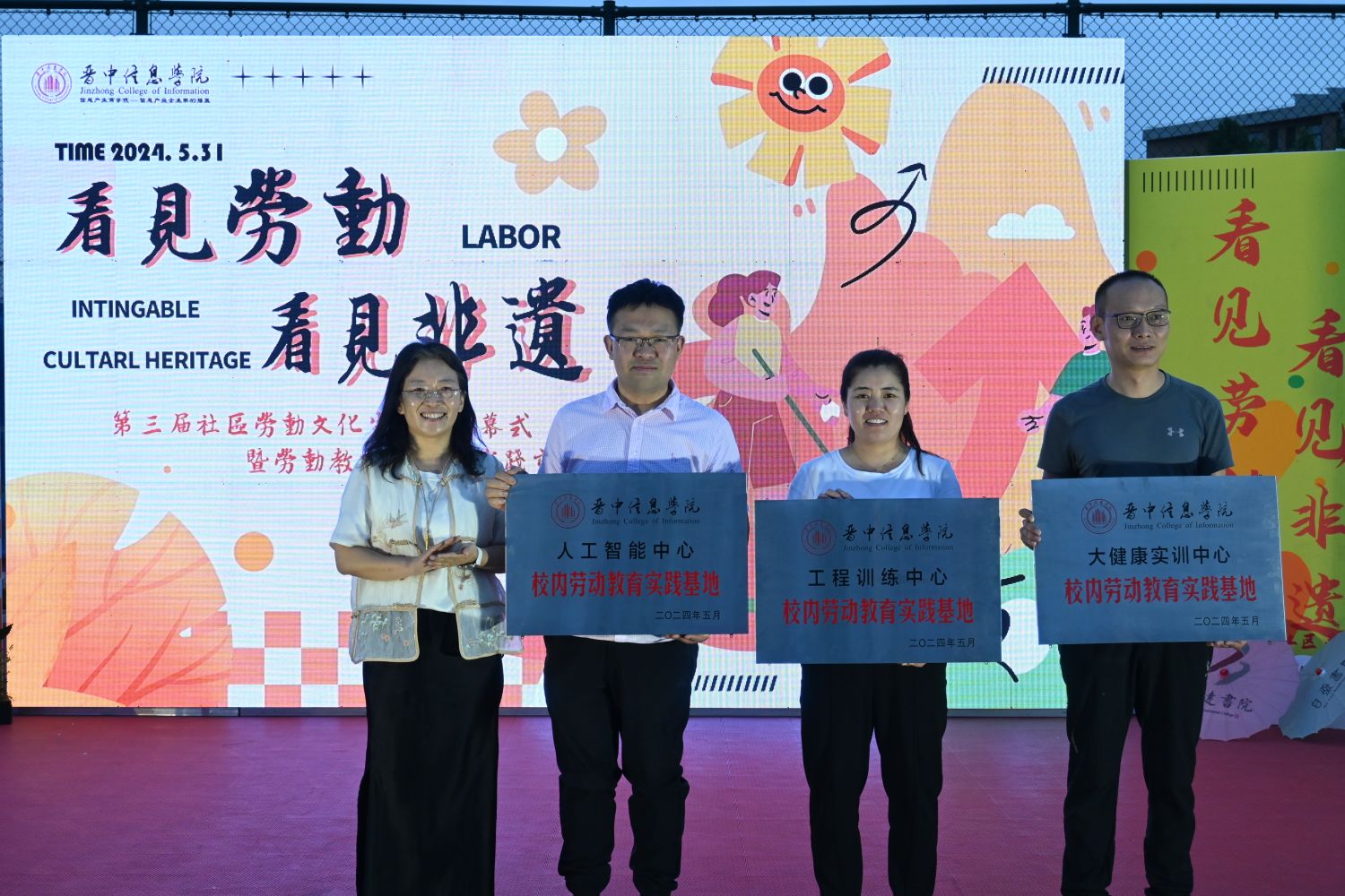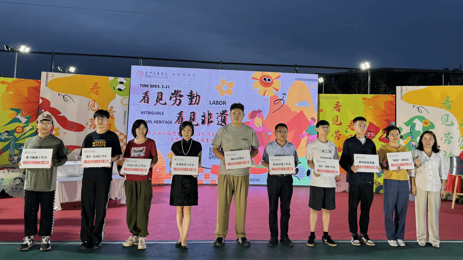 为进一步推进我校“一站式”学生社区建设,深化“五育融合”育人理念,将劳动教育创新实践与非遗传统文化相融合,5月31日19:00,由书院部主办,无边书院承办的“看见劳动·看见非遗”第三届社区劳动文化生活节闭幕式暨劳动教育主题月实践市集在学校体育公园热闹开集。晋中信息学院副校长傅永林、副校长陈春苗、校长助理栗艳龄亲临现场,与学校劳动教育工作委员会成员代表、院系负责人、书院教师及数千名同学共同感受这场传统与现代碰撞的文化盛宴。