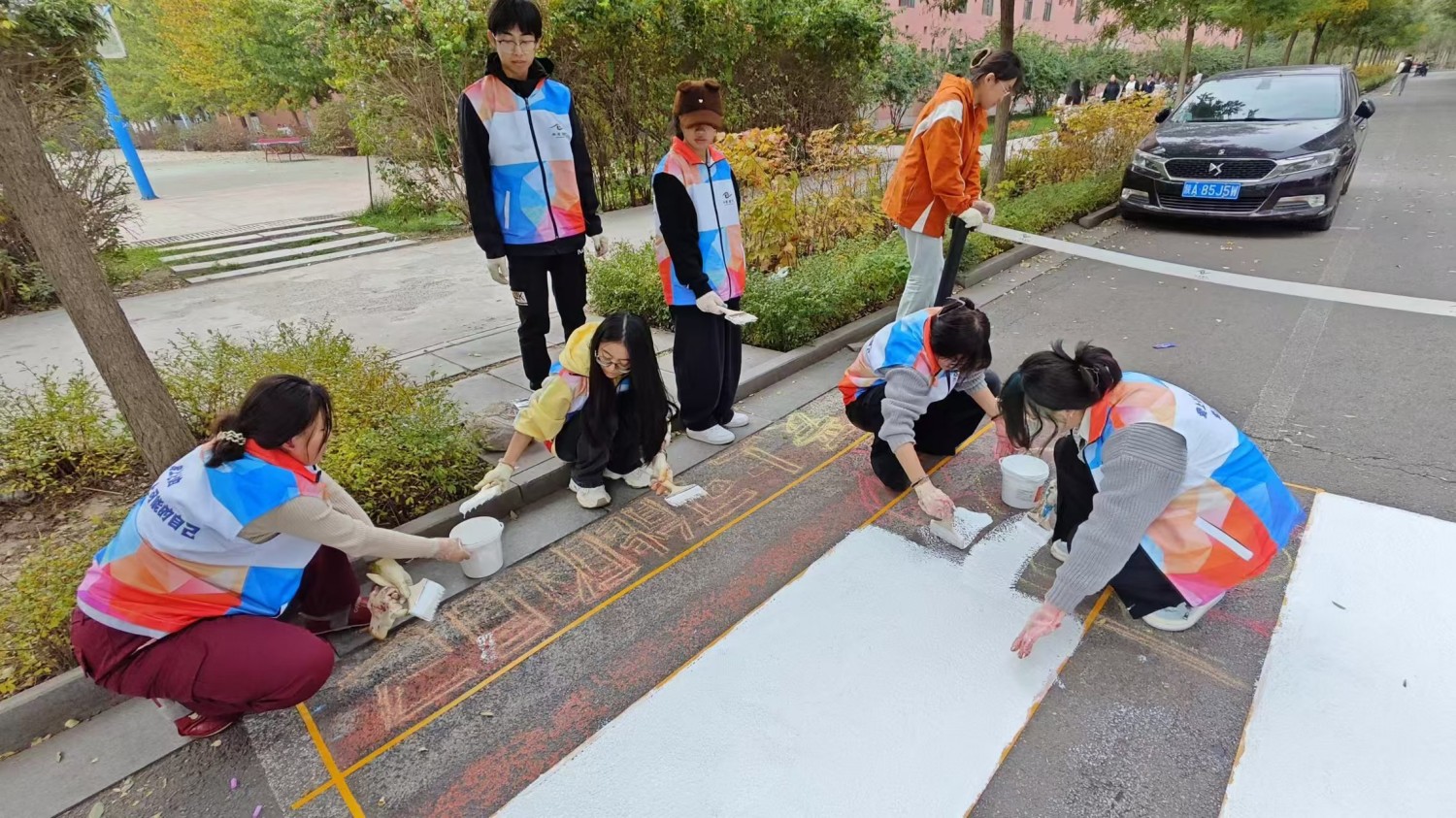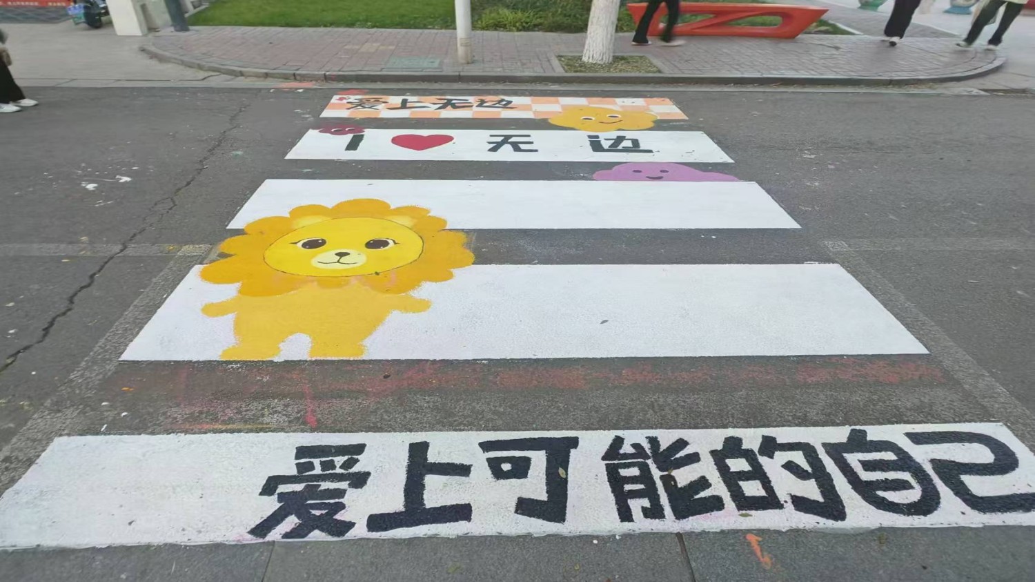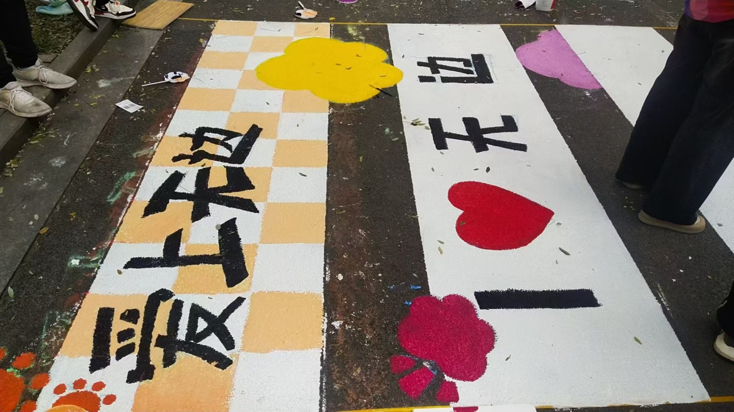 在斑马线的两端,一句“爱上无边,爱上可能的自己”不仅是对书院精神的诠释,也是青年学子对未来的憧憬与承诺。这条色彩斑斓的斑马线,以其独特的创意与鲜明的色彩,迅速成为校园内的新地标,不仅提升了书院社区的审美价值,更彰显了青年学生对社区建设的责任感与行动力。通过劳动与艺术的结合,同学们亲手为书院增添了一抹独特的艺术色彩,也为自己留下了宝贵的青春记忆。