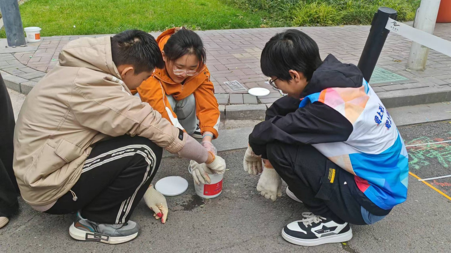 活动现场,同学们分工明确,热情高涨。工作人员精心筹备,各类绘画工具一应俱全。在劳动的号角声中,同学们率先垂范,对绘画区域进行了彻底清扫,为绘制奠定了整洁的基础。赵府崟同学作为引领者,指导大家细心涂抹底漆,为色彩斑斓的画卷铺设了坚实的舞台。郭维江同学的细心提醒,拉起警戒线,确保了创作空间的安全与秩序,为活动的顺利进行保驾护航。