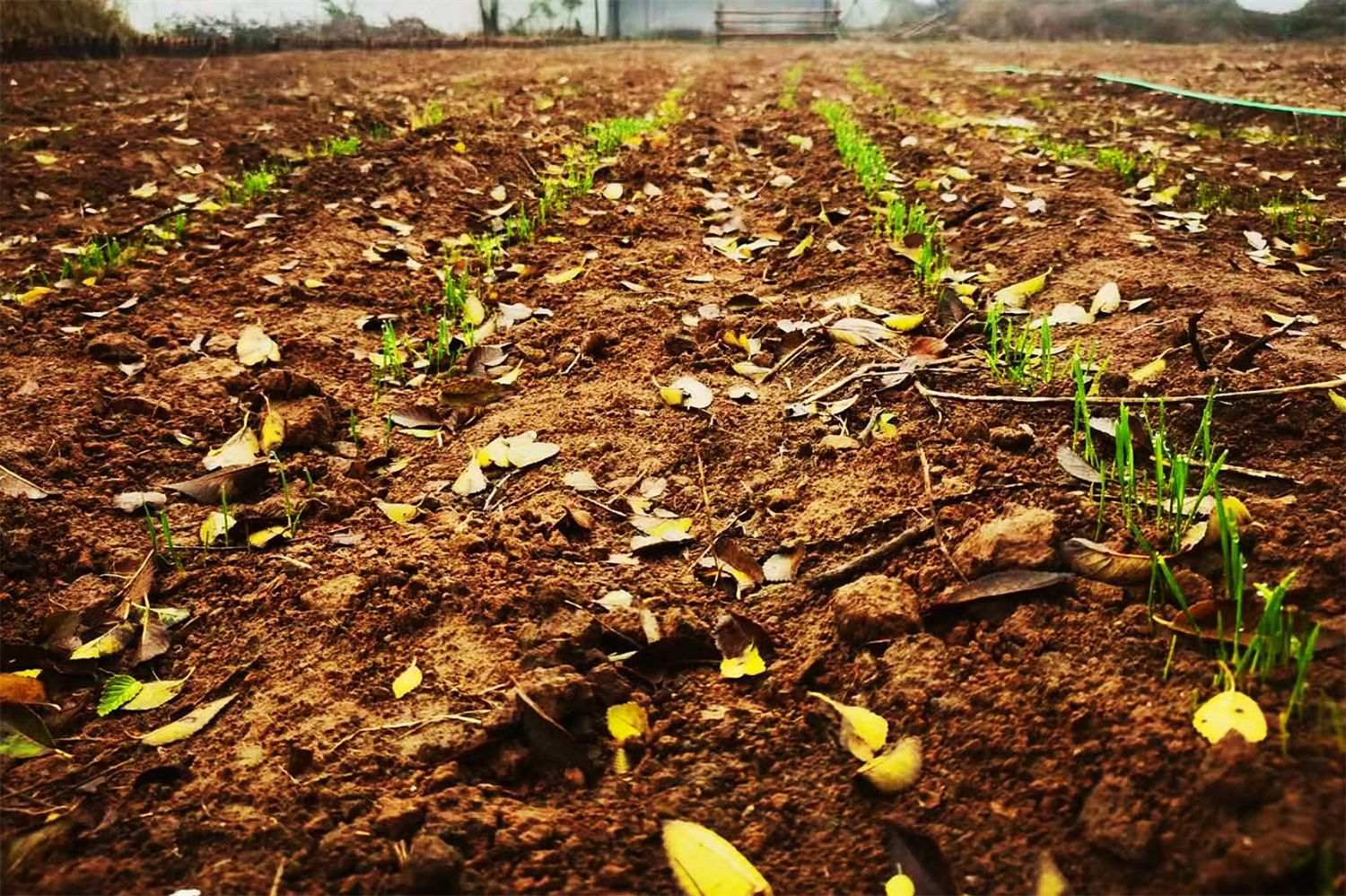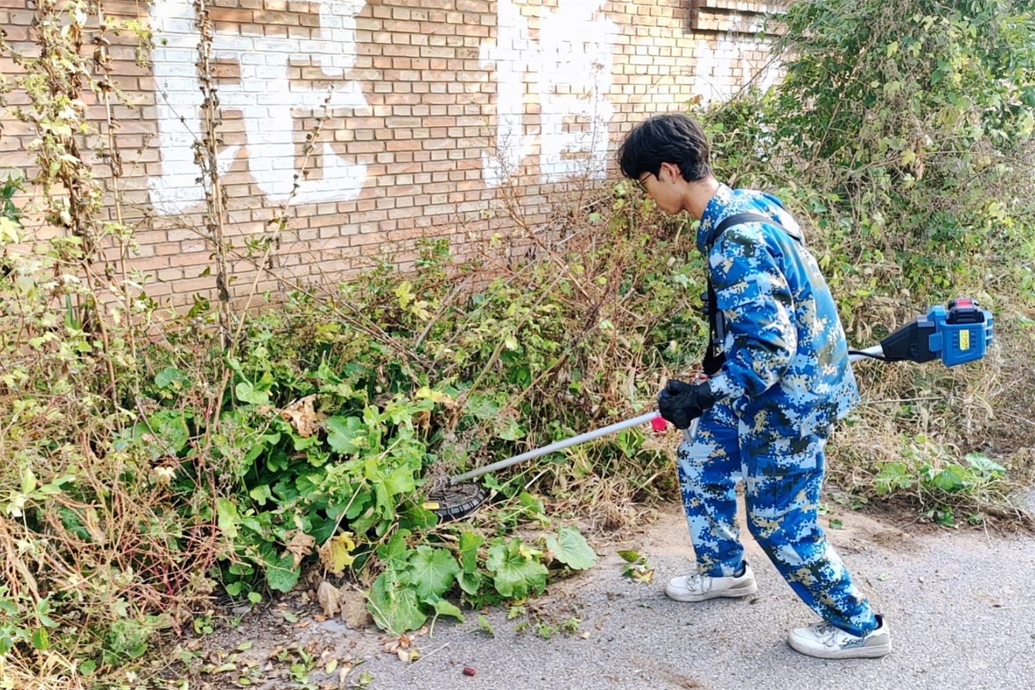 “一丝一缕当思之来之不易,半丝半缕恒念物力维艰。”师生团队齐心协力、分工明确,开始了秋播的第一步——清整田地。同学们双手紧握锄头,用力向下一挥,再向上一提,锄头深深插入土壤中,然后轻轻一撬,板结的土块就被翻了出来。起初,同学们显得有些生疏,但很快便掌握了技巧,动作变得越发熟练。而戴着手套,手握镰刀的“除草组”的同学,则“大刀阔斧”向前,一割一锄务求“斩草除根”。他们的动作轻柔而精准,每一刀都切在杂草的根部,确保杂草能够完全从土壤中拔出。在他们的努力下,原本杂草丛生的荒地逐渐变得整洁有序。正是“试一试”的无畏探索,师生团队历时近1个月,将27亩,近18000平方米土地的杂草一一清除,原本“荒芜”的土地被翻整得松软,适合播种。