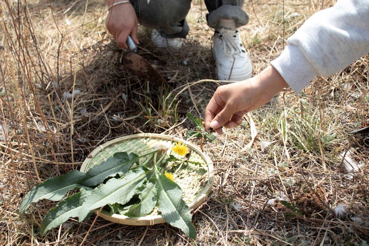 次日,晨光初绽,师生们便奔赴美宝山庄。田野间,小组分工默契——有人轻拨草叶,指尖划过荠菜的锯齿边缘;有人高举图鉴,紧盯车前草的脉络纹理;还有人半跪在地,沿香椿芽的根部小心下铲,像解开自然的谜题。泥土沾满指缝,汗水沁透衣背,同学们将课堂上的理论知识化为实战指南,在泥土与青草香中,品出了“纸上得来终觉浅”的真谛——原来,每一口野菜的清香,都藏着弯腰的虔诚与协作的智慧。