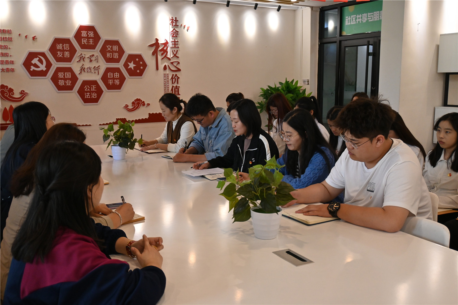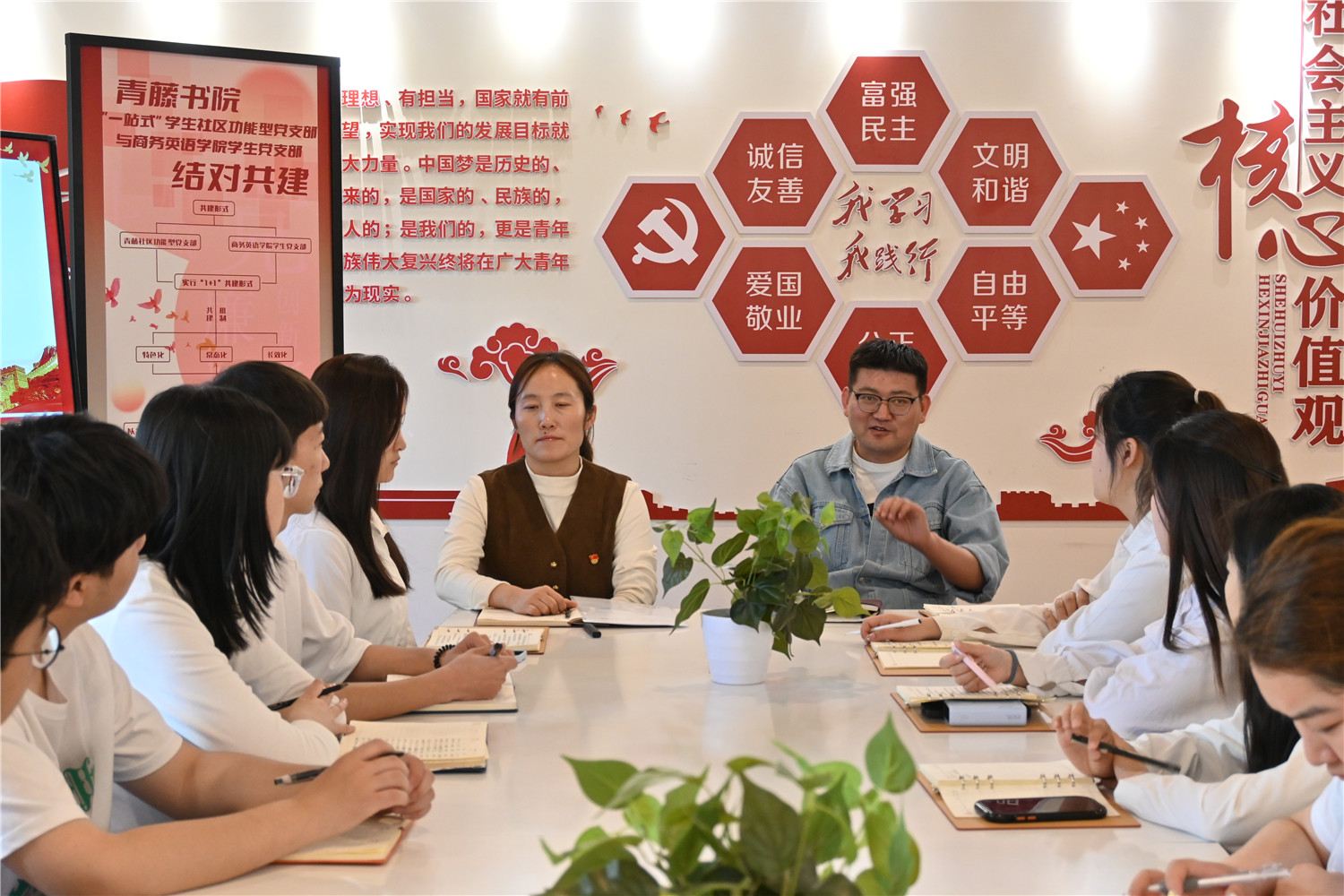 深入基层,做到足够的了解贴近,才能更好地开展工作。青藤书院“一站式”书院社区功能型党支部书记石宁老师先就青藤书院学生入住情况、书院学生政治面貌的情况进行说明,并结合党支部结对共建工作要求及青藤书院工作开展情况,具体提出4个部分的工作计划,发挥同步协调、共同发力的作用,达到共同学习,共同进步的目的,做到真正的共建组织、共创载体、共建共育、共解难题。