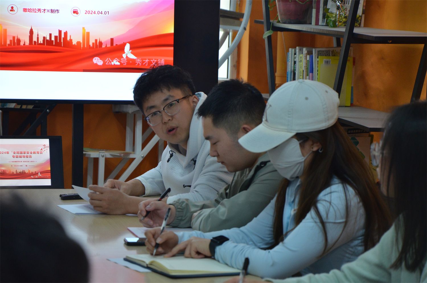 活动伊始,由淬炼商学院党总支部组织委员组织员郝琛琛老师关于全民国家安全教育日由来、关于国家安全的基本知识、准确领会总体国家安全观的核心要义等六个方面进行讲解。郝老师从全民国家安全教育日的由来谈起,为大家揭示了这一特殊节日背后的深刻内涵和重要意义。他指出:“全民国家安全教育日的设立,旨在增强全民国家安全意识,提高防范和抵御安全风险的能力,维护国家安全和社会稳定”。接着郝老师深入浅出地讲解了关于国家安全的基本知识,从政治安全、经济安全、军事安全等多个方面进行了全面地阐述,使大家对国家安全的内涵和外延有了更为清晰的认识。讲解中,郝老师对危害国家安全典型警示案例及日常生活中我们应该怎么做两个问题进行着重强调,通过生动案例和深刻分析提醒同学们要时刻警戒生活中可能危害国家安全的“陷阱”,避免泄露国家机密和敏感信息,不参与、不作为任何危害国家安全的活动及话题,同时也要积极向有关部门举报可疑行为,共同维护国家安全。