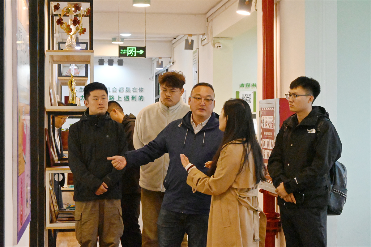 来访嘉宾先后深入我校太行书院、青藤书院、上河书院、毣谷书院,对“一站式”书院社区育人阵地进行参观考察,通过参观书院社区空间、观看宣传视频等,多维度了解了我校“一站式”书院社区的建设思路、功能设置和特色亮点等。各书院负责人从党建引领、书香校园建设、育人力量下沉、书院社区活动体系等内容进行详细介绍。四位嘉宾还与书院发展导师、学生公寓负责阿姨共同交流了学生住宿、校园文化、导师队伍等相关建设情况。