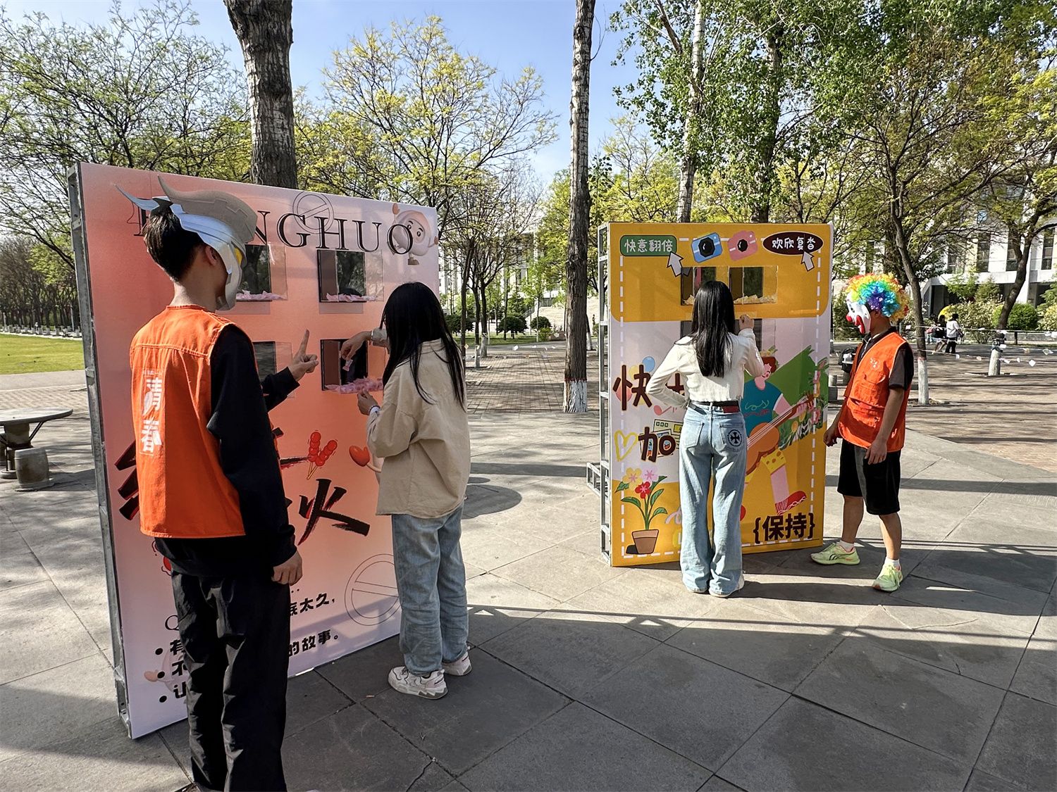 心灵互助,与爱同行。书院部于学生服务中心前小树林开展不焦“绿”情绪杂货店主题活动,以“情绪疗愈”为核心,免费提供五彩便签,鼓励学生们通过“手写输入”的方式将内心的情感与烦恼一一记录,以抒发情感、倾吐心声。这不仅为学子们提供了一个释放压力的全新平台,还在传递积极向上生活态度的同时帮助他们在快节奏的生活中找到心灵的栖息之所。