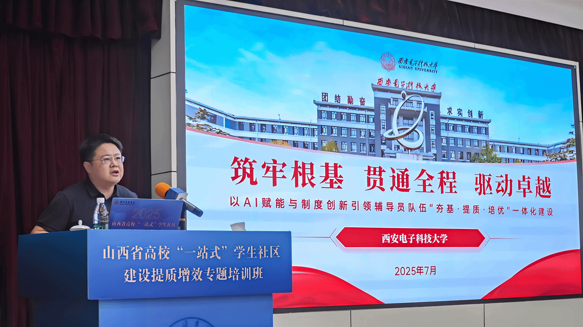 本次培训特邀5名专家作主题报告。西安电子科技大学党委学生工作部部长林波作《筑牢根基 贯通全程 驱动卓越,以AI赋能与制度创新引领辅导员队伍“夯基·提质·培优”一体化建设》主题报告,就辅导员工作共性问题,紧扣时代主题分享了“西电经验”,介绍了AI赋能辅导员队伍建设的创新实践路径。