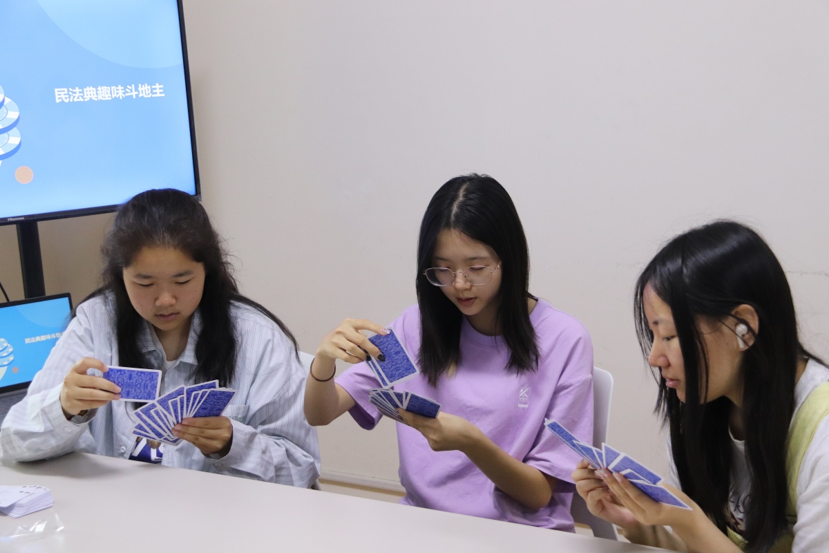 当遭遇他人碰撞后意图逃逸,且处于无监控、无目击证人的困境时,该如何运用法律武器维护自身权益?答案就藏在《民法典》之中。5月28日,箕城书院秉公律法工作坊于源创·思维坊开展【思辨工坊集】民法典扑克记忆挑战活动,以别出心裁的方式,为同学们打开了一扇通往法律知识殿堂的趣味之门。此次活动的亮点在于特制的民法典主题扑克牌。每一张牌面都精心印制了《民法典》的核心条文要点,巧妙地将法律条文与熟悉的扑克牌游戏相融合,打破传统普法教育的固有模式,让同学们在轻松愉悦的游戏氛围中,深入理解和掌握《民法典》的相关知识。活动设置了“民法典趣味斗地主”和“法条连连看”两大精彩环节。参与者们沉浸在“出牌即学法”的创新体验中,活动将法典知识深度融入竞技规则,通过“强制输出”和“及时反馈”机制,让同学们在策略博弈的过程中,不断强化对法律条文的记忆与理解,真正实现了寓教于乐,让法律知识入脑入心。