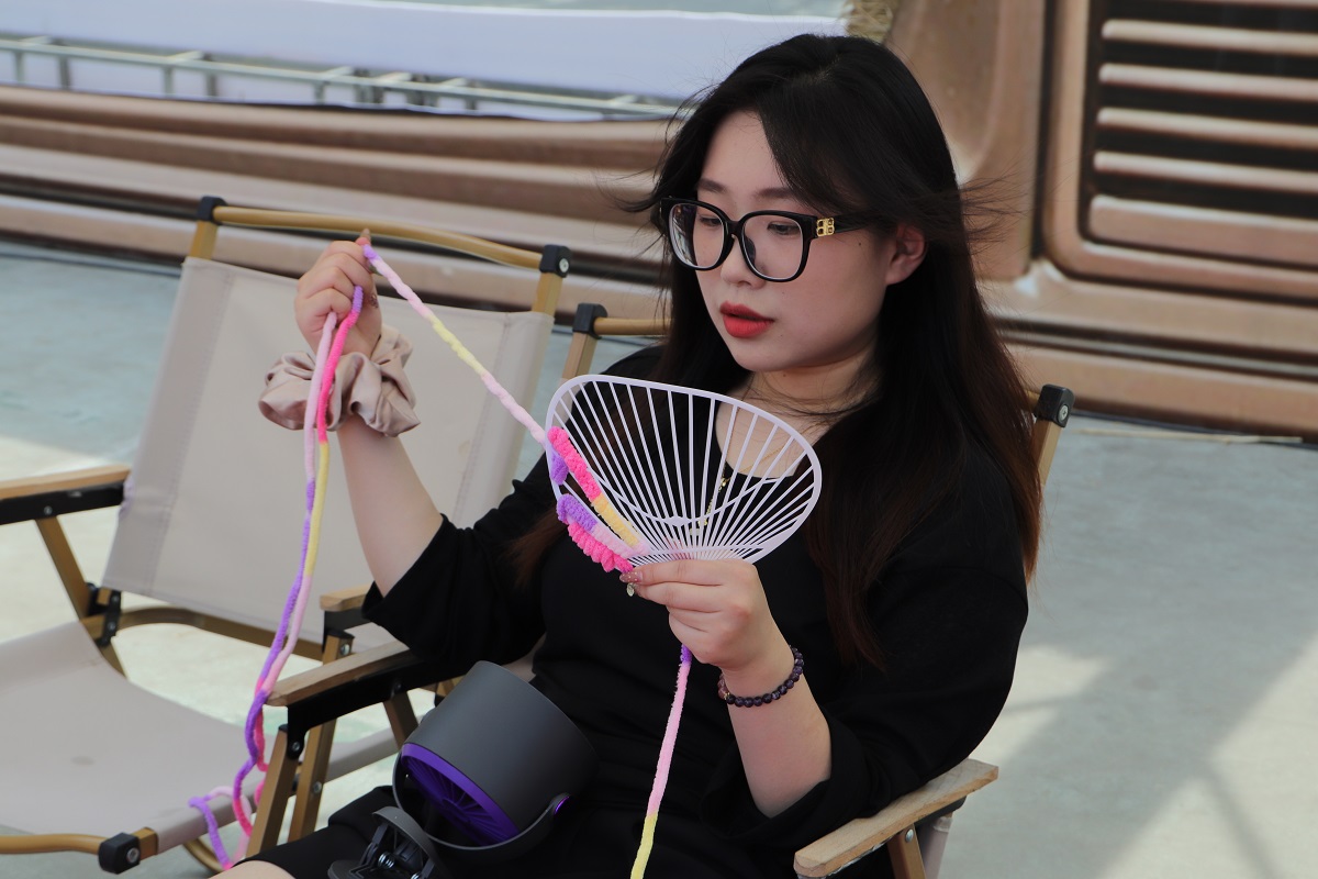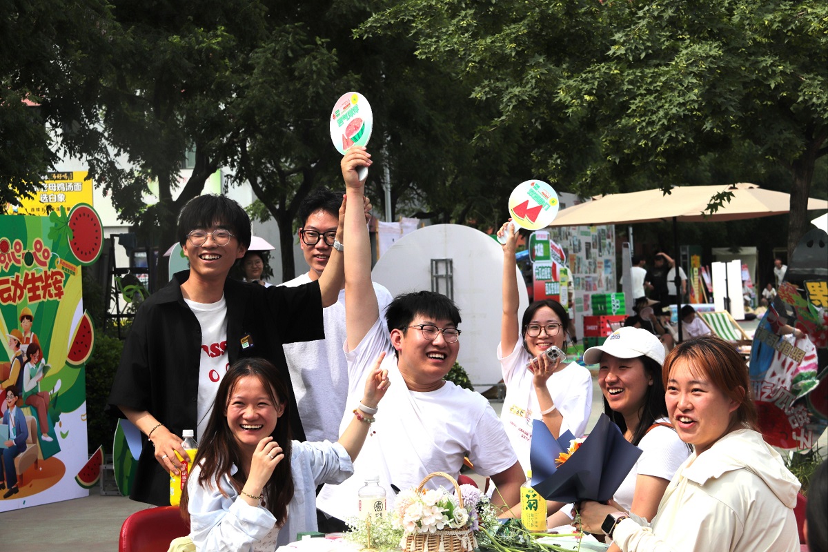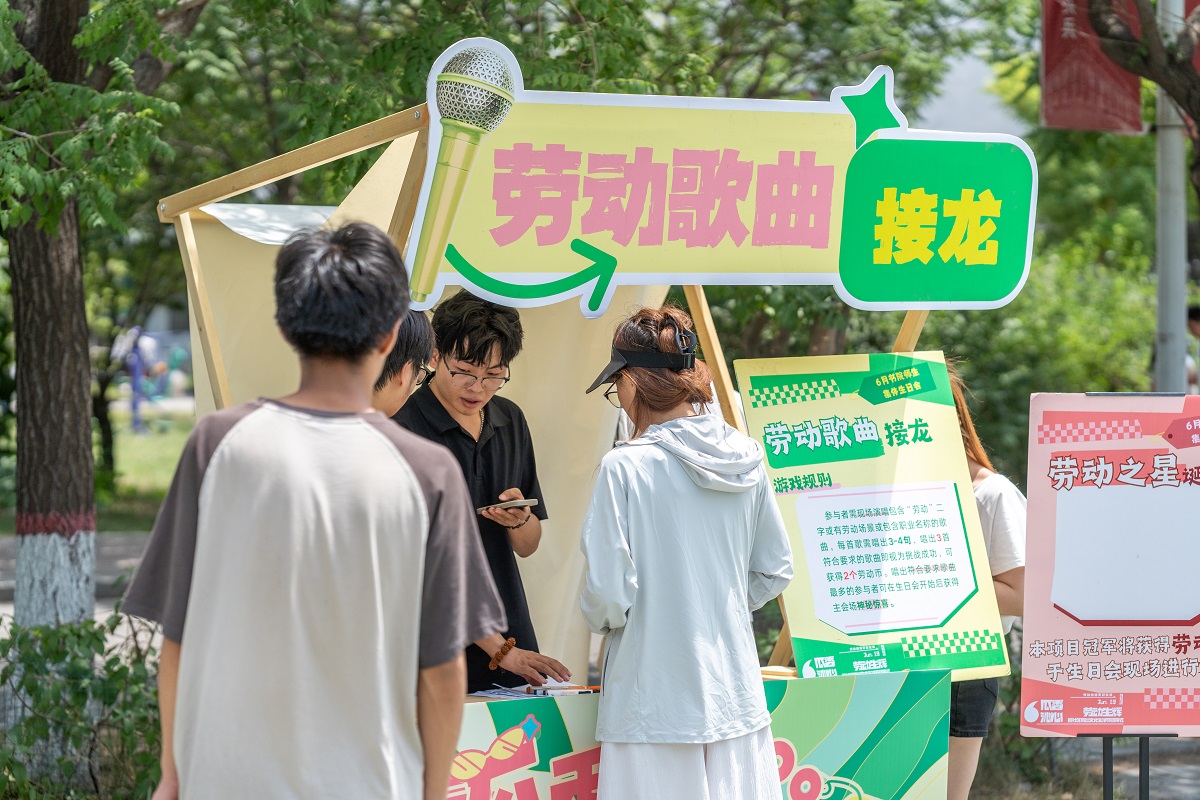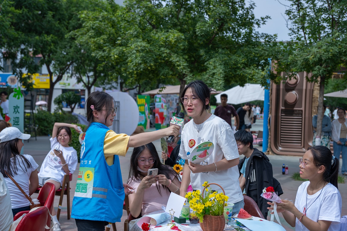 主会场内,“瓜田心声”成为劳动感悟的分享地,寿星代表与 “蓝马甲” 工作人员讲述“赚币”故事:与“气球鸡”斗智斗勇的欢乐,从手忙脚乱到游刃有余的成长。白燕书院闫佳苗分享草帽装扮的体验:“贴纸歪了重新贴,调整干花位置……简单的手作让人静心,戴着完成的草帽,心里特别满足。”工作人员郗龙玉则动情地说:“陪寿星闯关超有意义!看到他们学会新技能,“劳动币”攒起来眼里闪着光,我也跟着开心,这是专属我们的欢乐劳动记忆。”他们的分享,字里行间是亲手创造价值的自豪感。