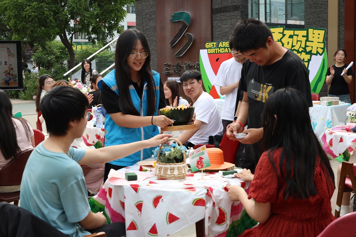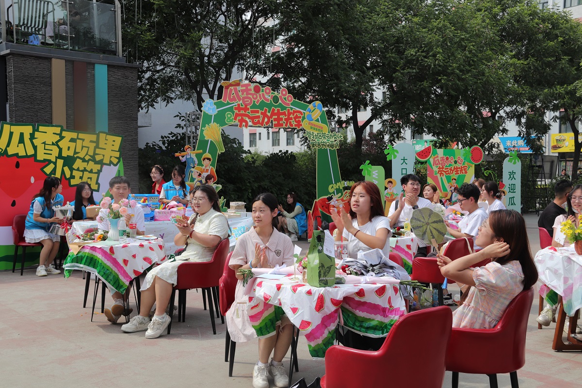 麦浪轻摇,瓜香弥漫。 六月的书院,一场融合了生日温情与劳动荣光的盛宴——“瓜香沁心·劳动生辉”6月书院师生集体生日会暨社区劳动文化生活节闭幕式于三达广场温情上演。这不仅是一场庆生派对,更是一次对劳动价值深度体悟的沉浸式旅程。