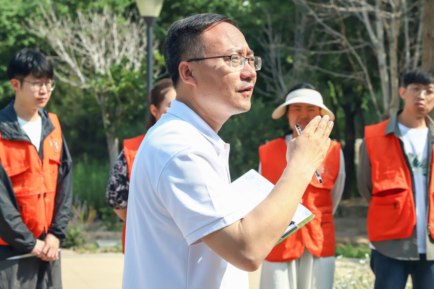 上午8:30,各书院老师团队在太行湖畔开展“书院导师团队赋能”。太行书院名誉院长薛保红教授带领众位老师进行体验新型团队沙盘项目目“水煮三国”。热身过后,老师们以两两猜拳的方式决定各自分组。团队分为“魏蜀吴”三组,每组选出一位主公、一位主公夫人,每局由主公选定一名将军进入资源地进行调兵遣将,士兵决定站位,率先连成五人一条线则成功,完成任务后首先举手向裁判示意者可优先胜利。比赛期间中禁止言语交流,违反规则扣分。游戏分为四轮,率先完成连线的队伍可获得大量积分,以后每轮比赛积分获得量逐渐增加,最后积分多的队伍获胜。薛院长一声令下,游戏正式开始。每组主公开始排兵布阵,试图连成五人一条线。士兵则根据将军的指示迅速站在相应位置,争取获得胜利。交错站位间,现场气氛愈发紧张,各主公认真观察着场上的形势。经过四轮激烈的角逐,最终“魏国”获得了胜利。“角色体验后,薛院长带领书院导师团队将活动中的感受与书院学生工作的思考进行探讨和分享,以“角色定位”为基石,促进发展导师团队融入书院,建立积极的心态,提高收获感和成就感,最大化改善团队工作效能。