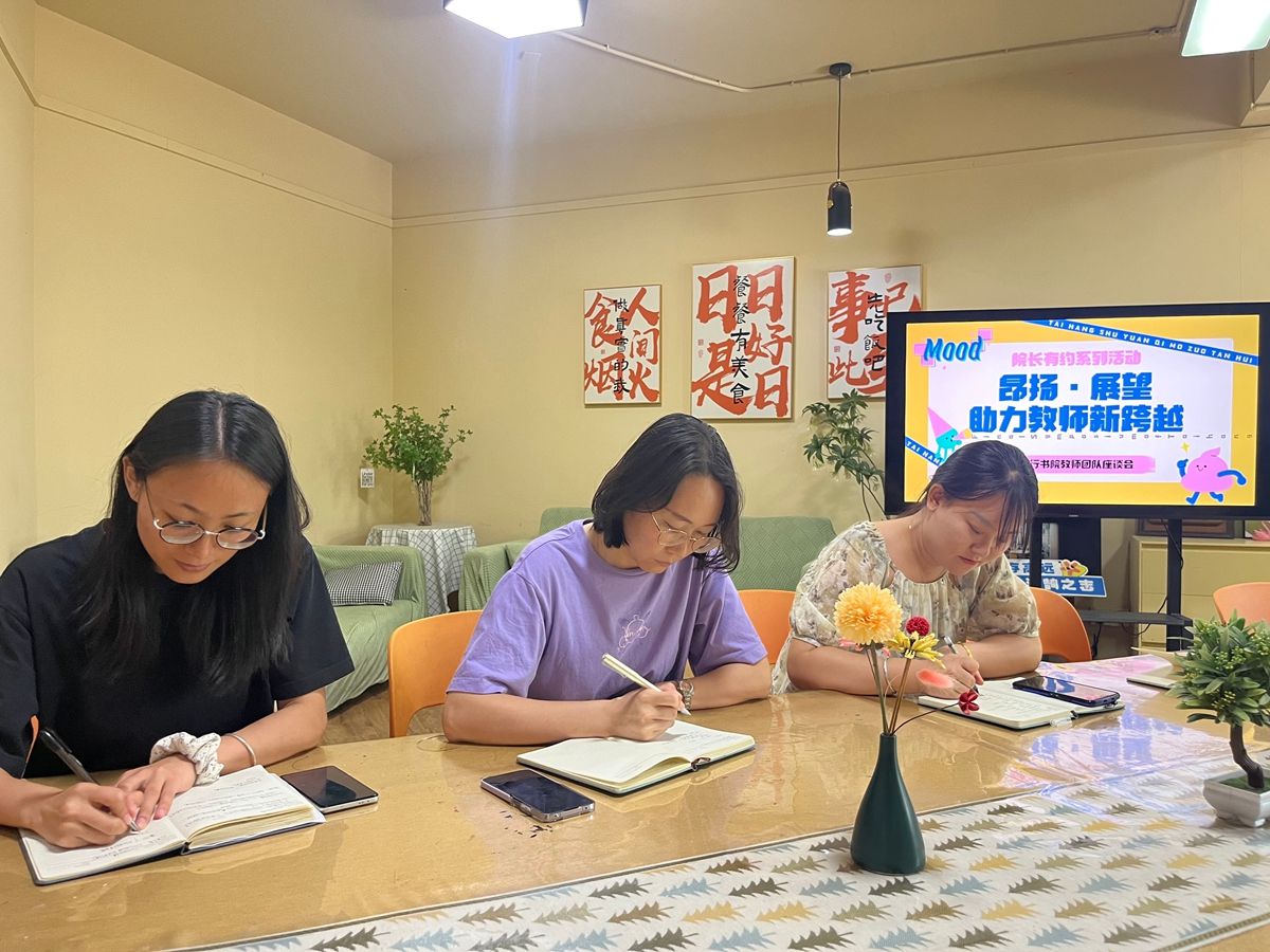 在交流过程中,教师们表达了在学期工作中自己遇到的问题与思考。付莉媛老师就大咖阅读如何创新性发展等方面提出问题,薛老师从聚焦核心领导力与场景化活动方式等方面出发给予建议,强化读书背后的协作力问题;郭昕老师就本学期新落地的课程包活动出现人员不固定、课程效果不佳等问题提问,薛院长建议优化运动推广方式、明确课程包活动目标,将书院核心领导力协作力放在首位,弱化其他因素,以实现德体结合的育人目的;王蒙蒙老师围绕视频剪辑、宣传品制作等学生团队技术培养提出相关问题,薛院长从书院育人角度出发,建议依托培养学生协作力为导向“招聘”学生技术顾问,通过无数次打磨进而让学生的协作力得以不断提升。李静老师就今年“三下乡”活动的工作推进向薛院长寻求建议,薛院长就三下乡资源链接、活动侧重内容等方面进行工作指导,院长建议围绕红色元素、红色研学的主题推进本次三下乡,同时要以乡村振兴为引,点对点地针对一个项目持续深挖跟进并做出成果。