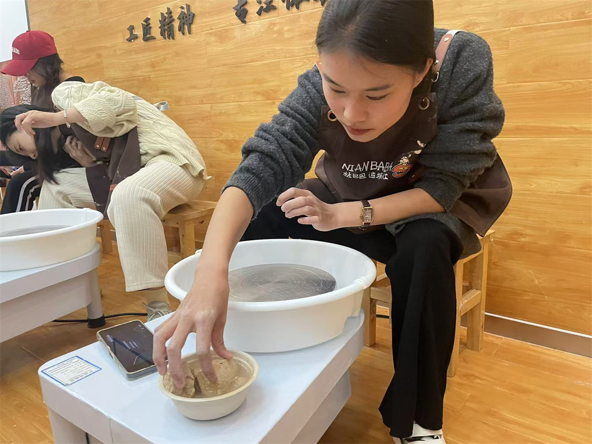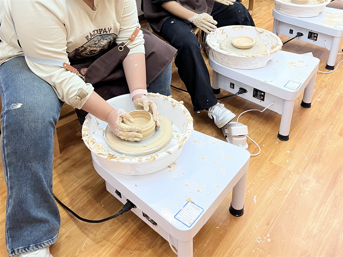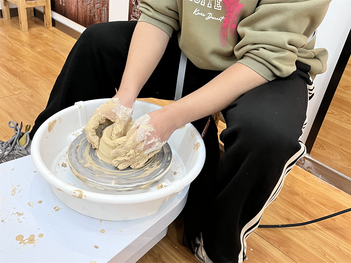 随后,同学们拿着陶土,开始发挥自己的想象力。有的人小心翼翼地揉着泥土,感受着泥土在手中的柔软与韧性;有的人专注地拉坯,试图将泥土变成自己心中理想的形状;还有的人发挥创意,在作品上进行各种装饰。在这个过程中,大家仿佛忘却了外界的喧嚣,沉浸在陶艺的世界里。经过几个小时的努力,同学们的作品逐渐成型。