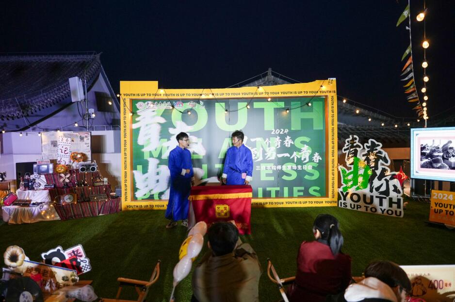 60年代和00后相遇,二十世纪和二十一世纪交融,古今时空的交替,复古与潮流的对话,最酷“年代搭子”已就绪,一场穿越60年的超时空生日会, 在书院,邂逅不同年代同频共振的“你”。为进一步营造书院朋辈互动氛围,3月26日18:30,由书院部主办,白燕书院承办的“青春由你,请回答19/20_ _”三月书院师生集体生日会于毣谷书院毣·天台举办,15名全生异科导师、65位小寿星以及120位同学共同开启年代搭子的青春旅行,沉浸体验不同年代的青春岁月。