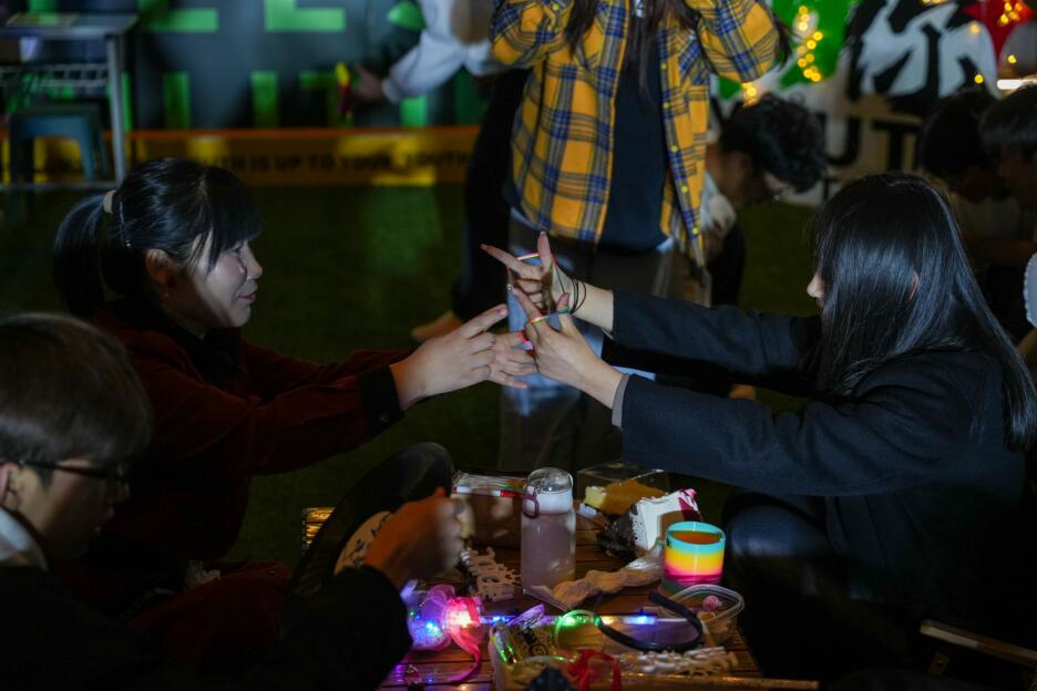 煮熟的鸡蛋、加糖的白粥,是70年代生日当天美好的期待,00后,则是开一场天台PARTY,实现青春的狂欢。夜空下的生日露营地,是小寿星们DIY蛋糕的主场,浓香的奶油挤在蛋糕胚上,打造专属于自己的生日蛋糕。书院异科导师孔霞老师、李玲老师为小寿星们切蛋糕,将书院“家文化”传递给在场的每一个人。白燕书院黏巴·造物工坊负责人朗宜杰同学带领同学们编织手链,传承民间传统手工绳结编织技艺,将多彩愿望汇聚于此。