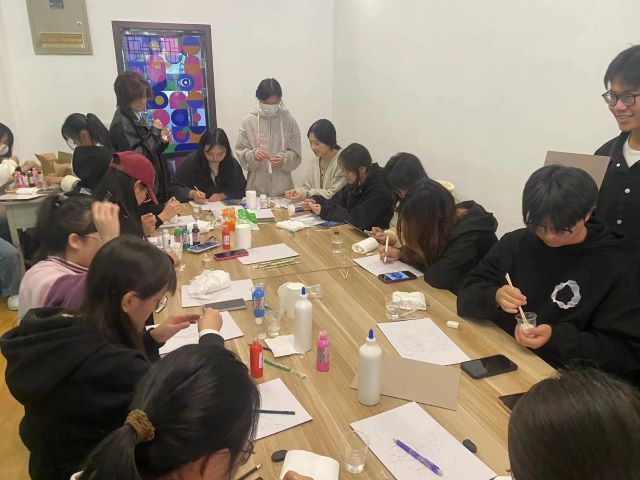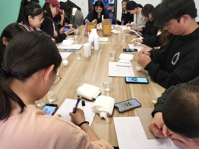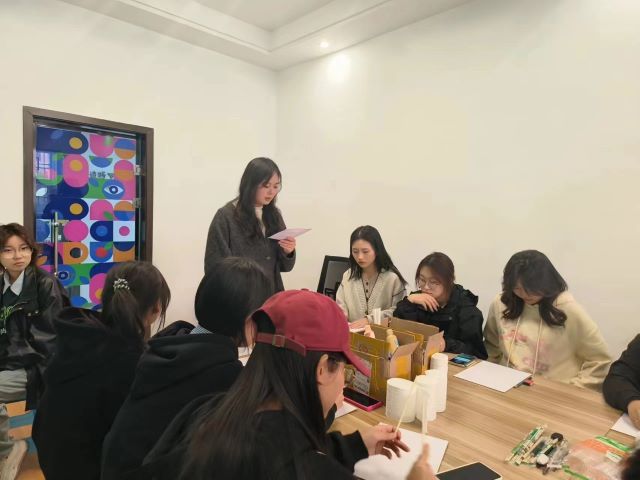 活动之初,平面设计部部长王佳琪向同学们讲解了有关纸浆画的一些知识,并为同学们展示了已经制作完成的一些简单的纸浆手工艺品,例如纸浆灯笼、纸浆花盆等等,让同学们对纸浆画有了更多的了解。“纸浆画类似于彩泥纸,是以纸浆为主要材料创作的工艺美术作品,而纸浆画颜色鲜艳,具有浮雕效果更是它的一大特点。”平面设计部副部长赵佳瑞为同学们介绍。同学们一边观看一边跃跃欲试,与身边的同学们交流着自己的想法,对自己即将开始制作的纸浆作品充满期待。这次活动以纸浆为媒介,通过将废纸加工成纸浆,再结合颜料、植物和塑料等材料,创作出个性化的艺术品。为同学们提供了锻炼动手能力,提高审美和艺术水平,展示自己的创意和灵感的机会。