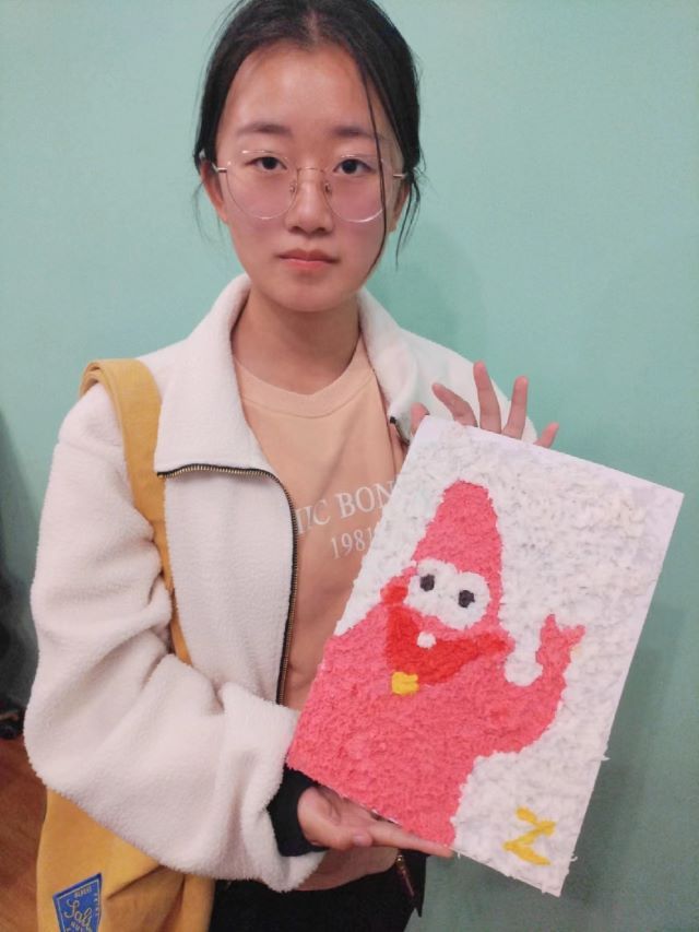 活动的最后,同学们进行作品展示,并与自己的作品合影留念,在活动过程中,同学们尽情发挥自己的想象力和创造力,无论是简单的几何图形,还是复杂的景物描绘,都可以通过纸浆画的方式展现出来。同学们可以亲手制作出自己喜欢的艺术作品,将内心的想法和情感融入其中。此次活动让同学们感受到了不同形式的艺术美,不仅提升了自己的艺术水平和创造力,也通过艺术的方式传递了乐趣与美感。