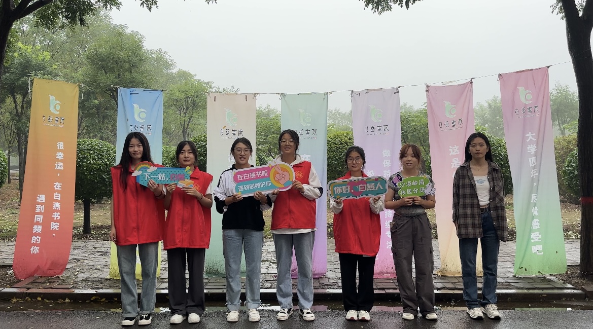 “担心初来乍到会词不达意?”“网上冲浪,宿舍食堂问题扑朔迷离?”“书院不够了解?信息掌握不全?”发光少年请你留步,在这里,学长学姐为你们答疑解惑,我们的故事将从这里开始。作为一所充满创意和温馨的书院,我们特意举办了一场书院迎新会。为你们准备着丰富多彩的纪念奖品,在定制的签名板上欢迎新生们留下你与白燕的印记,成为你独特的校园回忆,见证着你与白燕书院的成长与交流。