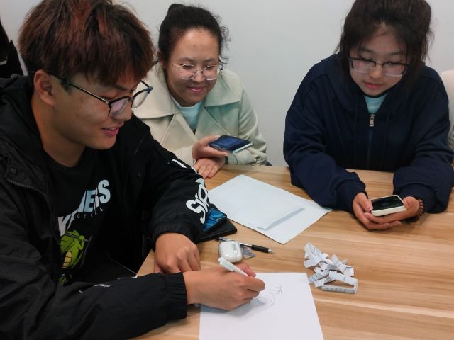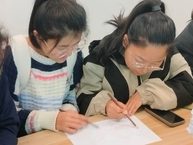 第二环节画图接龙游戏迅速开始,本轮游戏的两个关键词是“白燕和家文化”。同学们在总结第一环节的成败经验后,游戏刚开始便与组内成员秘密讨论对策,随后大家齐心协力认真作画。五分钟一闪而过,每组的“大”作也绘作完毕。接下来,就是有趣的展示环节了,一组的幽默元素让人忍不住笑出声来,给人带来轻松欢乐,二组用笔勾勒出了生动的场景和人物,让我们看到了同学们对白燕书院这个大家庭的期盼与依赖,体会到画图的细腻与情感。每组的作品都别具特色,成绩亦不分上下。
