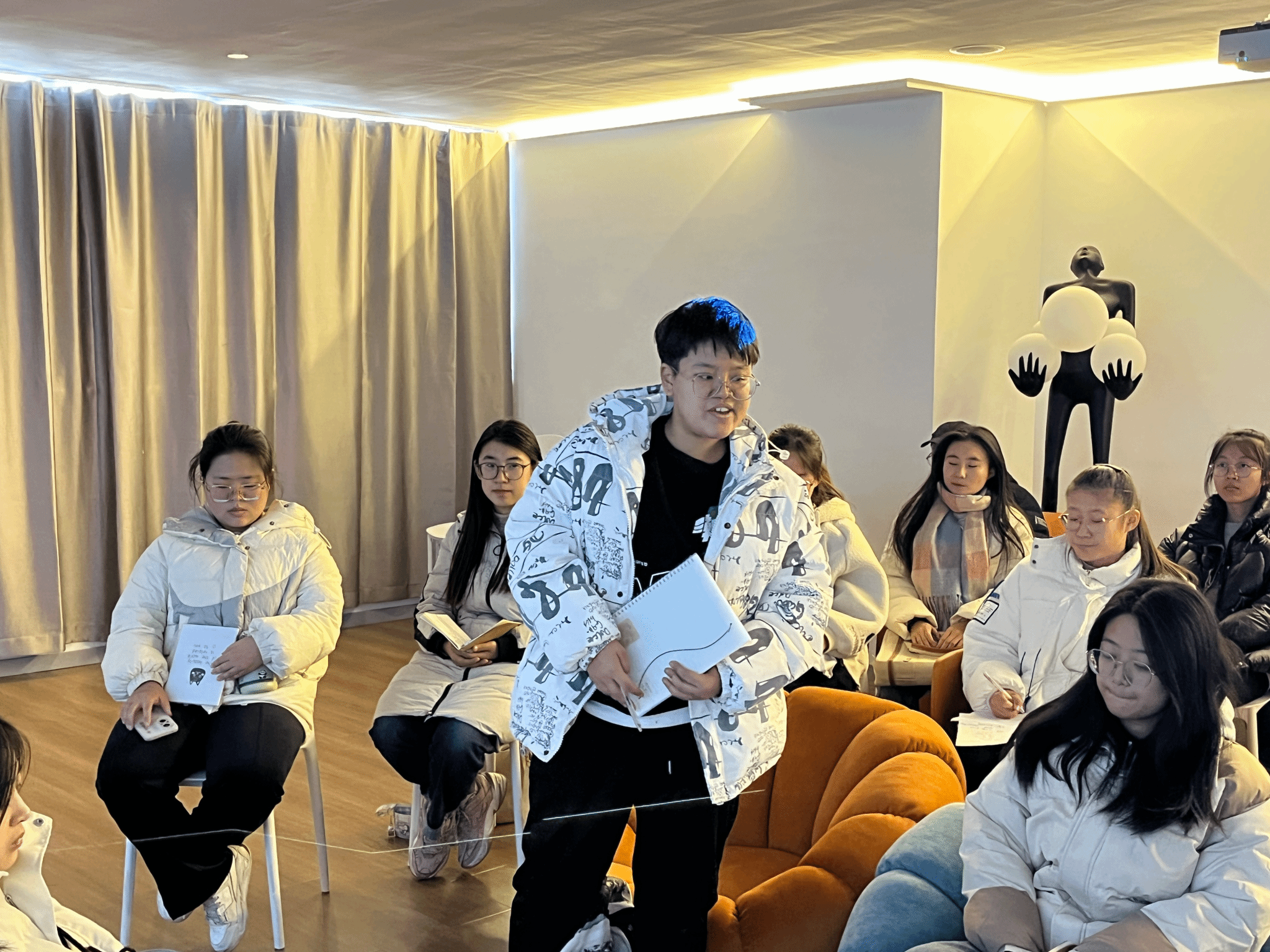 现场的氛围被带动起来,书院的干部们都争先恐后的想要发表自己的感受,首先发言的是综合部的部长霍晓涛,霍晓涛部长重点发表了自己对近期参加比赛的感受,她提到,进入白燕书院后参与了大大小小的比赛,有欢乐也有悲伤,但白燕书院永不言败!之后,文化培育部部长王欣果,场地部部长郎宜杰,新闻编辑部副部长刘菀茹,社区服务部副部长张英等依次发表自己的心得感悟,场地服务部副部长苏莹说她从一个新手小白成长到干练干部,多亏了白燕这个大家庭对她的帮助和信赖!