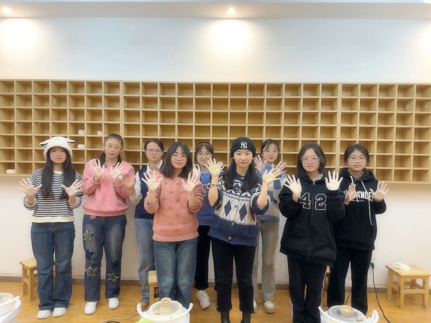 随着时间的推移,一件件精美的陶艺作品逐渐呈现在大家眼前,同学们的脸上露出了满足和自豪的笑容,他们互相欣赏着彼此的作品,分享着成功的喜悦。在郭老师的指导下,同学们用心感受着陶艺的魅力,用自己的双手创造出了一个个独特的艺术品。活动最后,在郭健美老师的提议下,大家站在一起合影,记录下这个美好的瞬间。同学们自愿当起了志愿者,认真清洗着拉胚机,用抹布仔细地擦拭着机器的各个部位,将残留的陶土和污垢一一清除。经过一番努力,拉胚机焕然一新,本次陶艺之旅圆满结束。