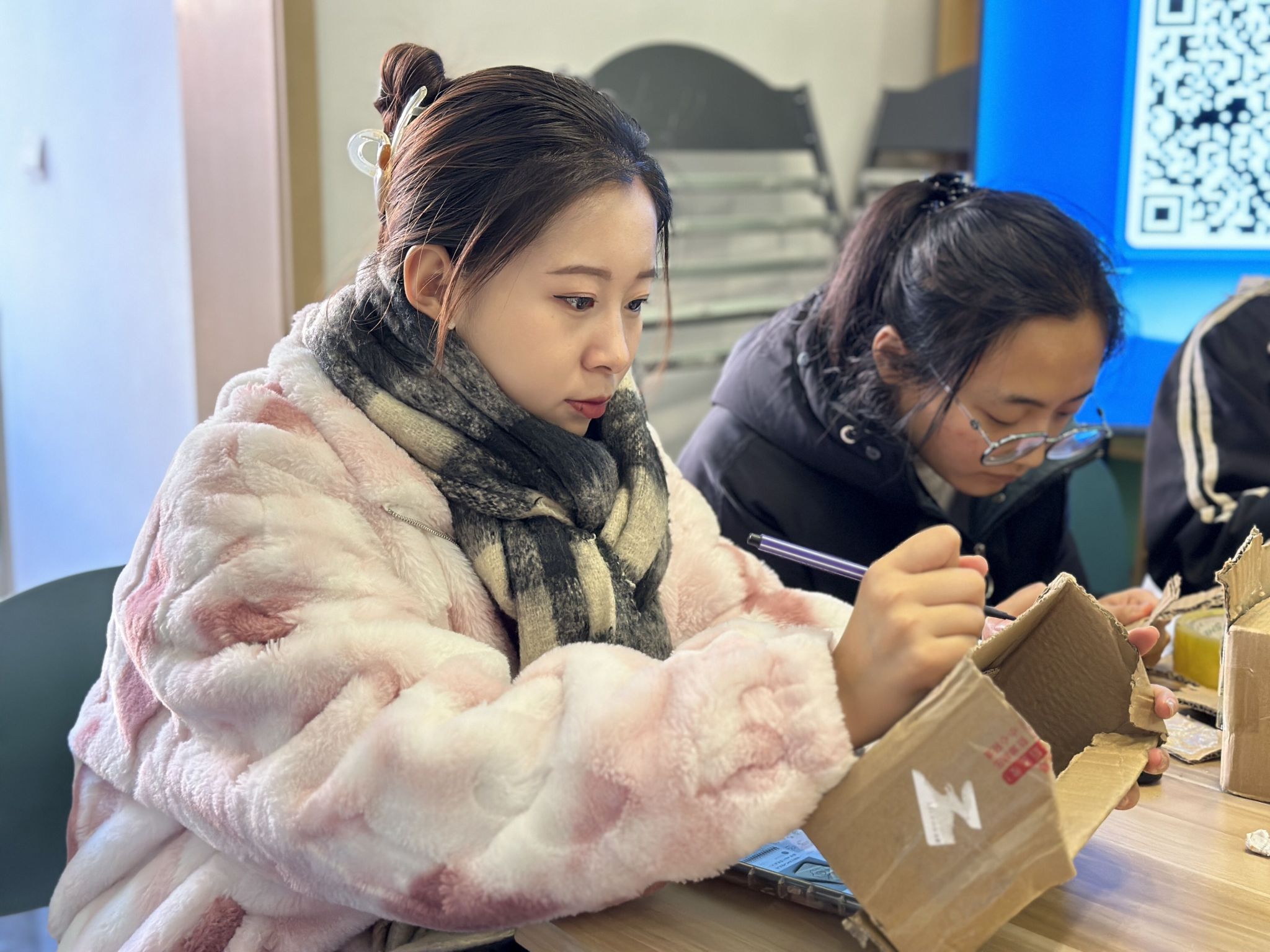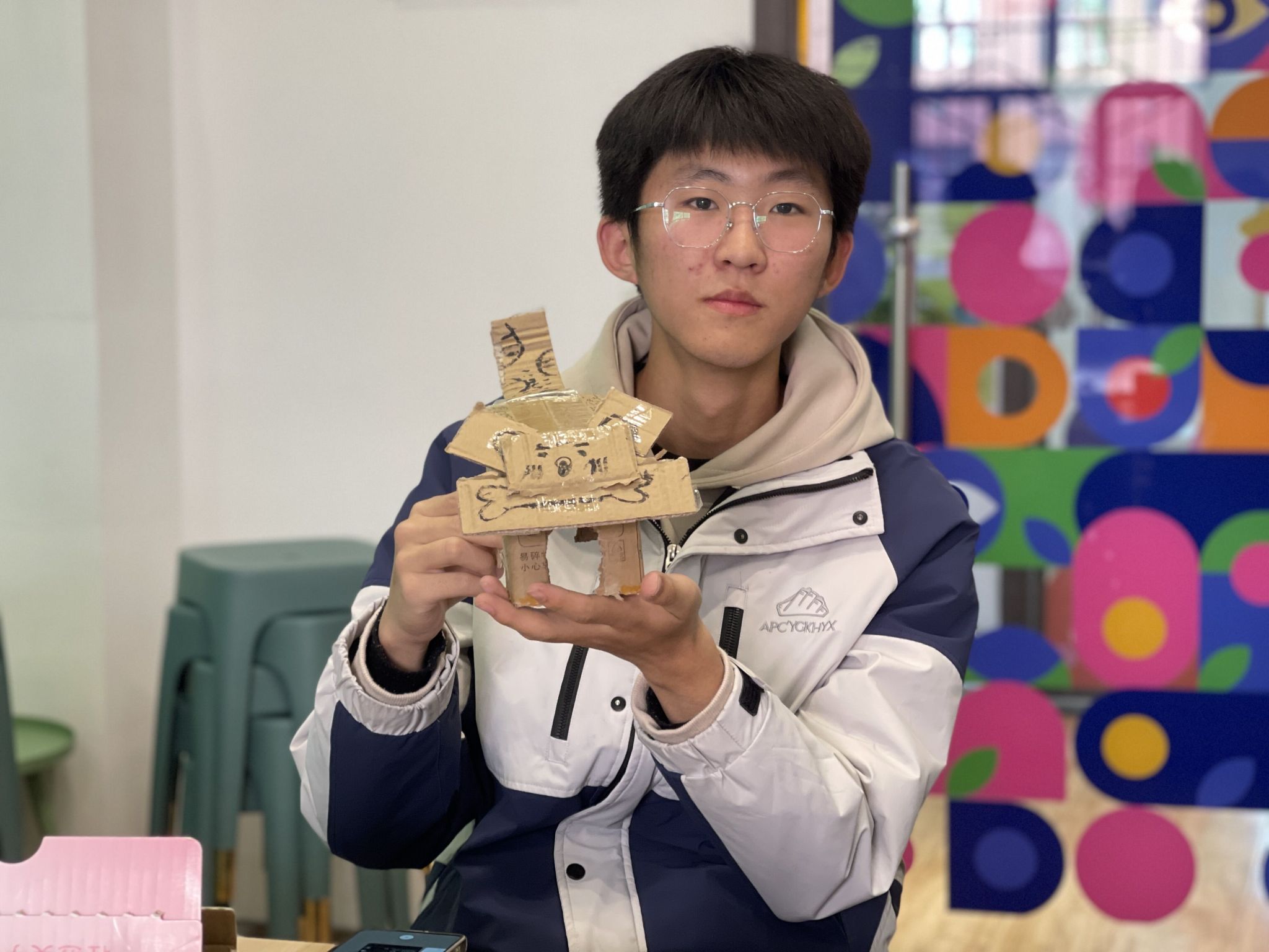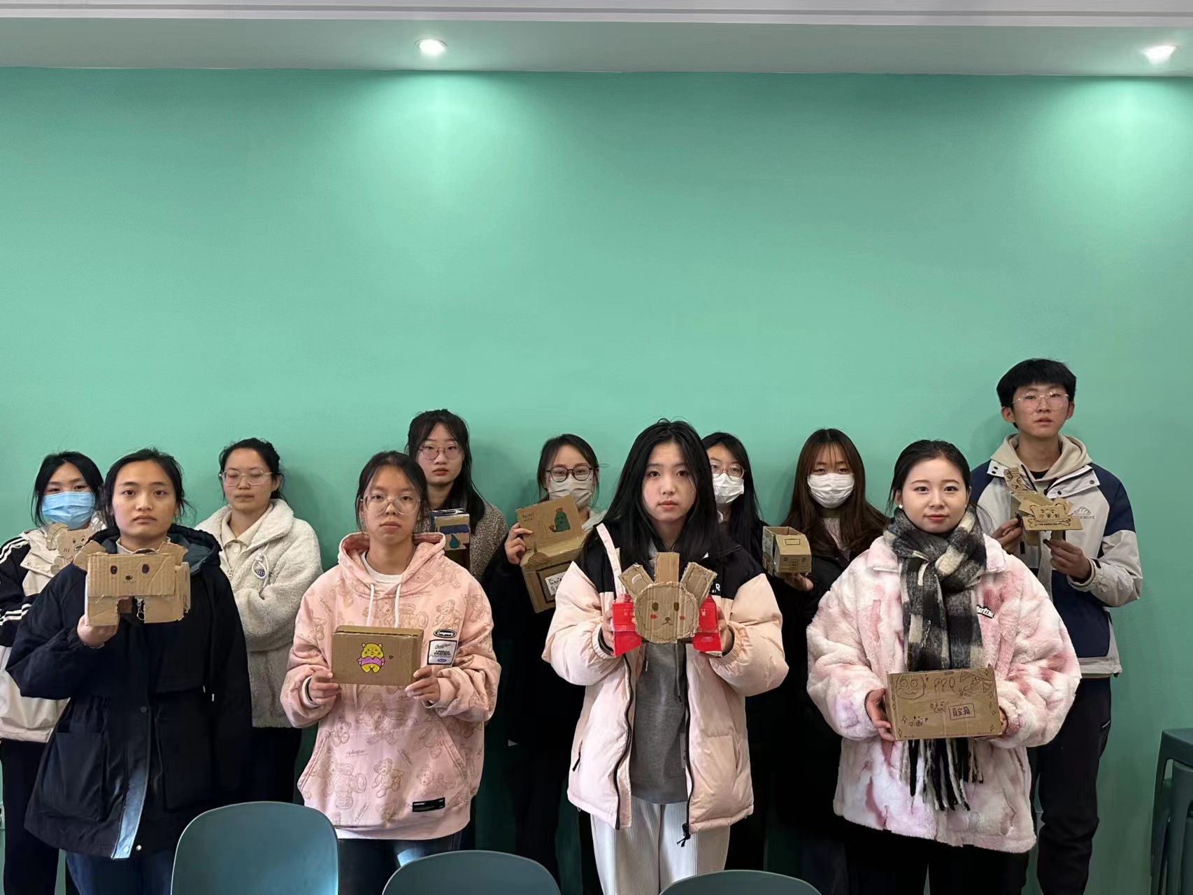 随着时间的流逝,同学们陆陆续续地完成了自己别出心裁的创作,桌子上从原来的一堆废旧纸盒到后面的具有实用性的装饰品,无不为房间增添了一份温馨和浪漫。在负责人雷祥宇的安排下,大家分别与自己的作品进行合影,脸上洋溢着快乐和满足的笑容。最后,参与者王鹤烔说:“生活中的美好和创意是无处不在的,这些创意无限的纸盒变身装饰能够激发我们的灵感和创意,让我们的校园生活更加美好。”