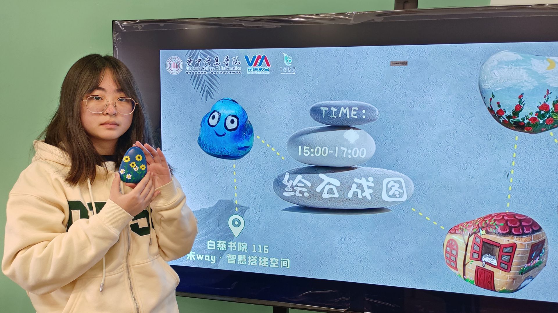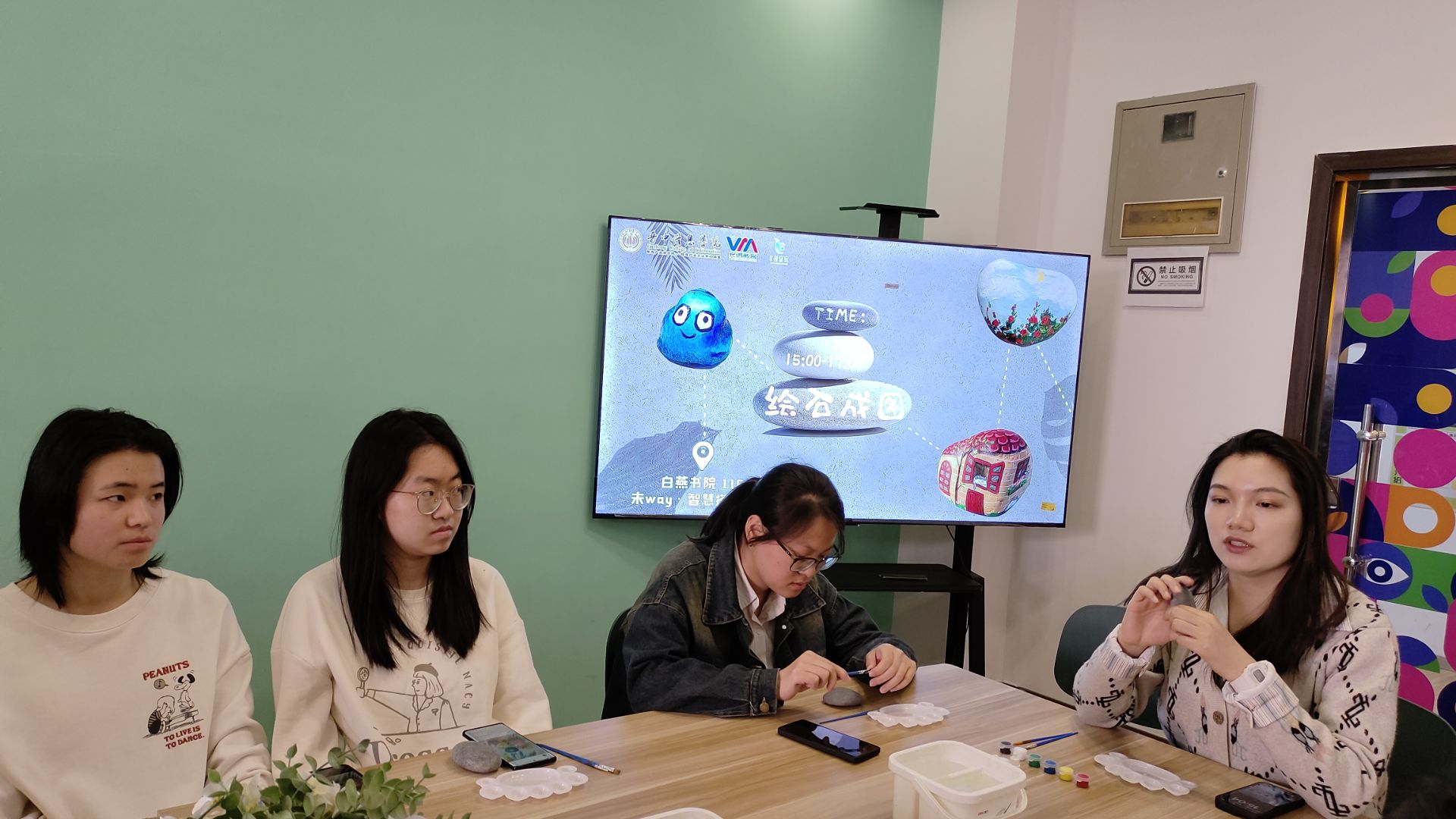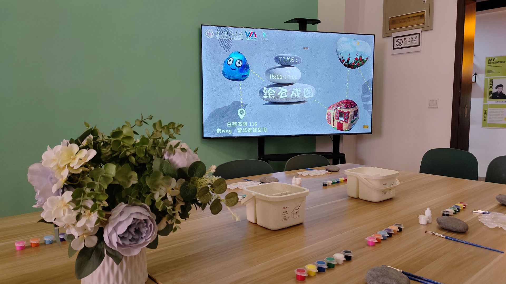 在快节奏的生活中,专注于一块小小的石头,用五彩的颜料和自然来一场艺术的“battle”。为了让同学们发现自然界中石头的魅力,通过点缀鲜艳的色彩,创造出属于自己的花石。4月2日15:00白燕书院于116未WAY·智慧搭建空间举办以“石”当纸,绘“石”成艺活动。该项活动不仅帮同学们凝聚心神,提升专注力,同时也激发了大家的想象力和创造,让同学们在专注中成为更好的自己。