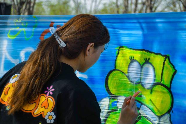 静谧、阳光、树影,在喧嚣的现代生活中,自然与艺术的嵌合令人向往。树林里的“膜”法画,以涂鸦记录春日信院,激活白燕书院小树林活力,旨在为同学们提供一个发挥想象力、提高专注力、展现创意力的平台。为此,4月12日15:00白燕书院携手艺术传媒学院、ATS手韵涂鸦社于白燕书院前小树林开展“我与阿信的春天对话”“膜”法画活动,以梦想、校园、生活为底色,让同学们感受涂鸦艺术带来的视觉享受,在透明的“纸面”上绘出不同的颜色、图案,将艺术中融入专注力的元素,共同展现出青春的韵味。