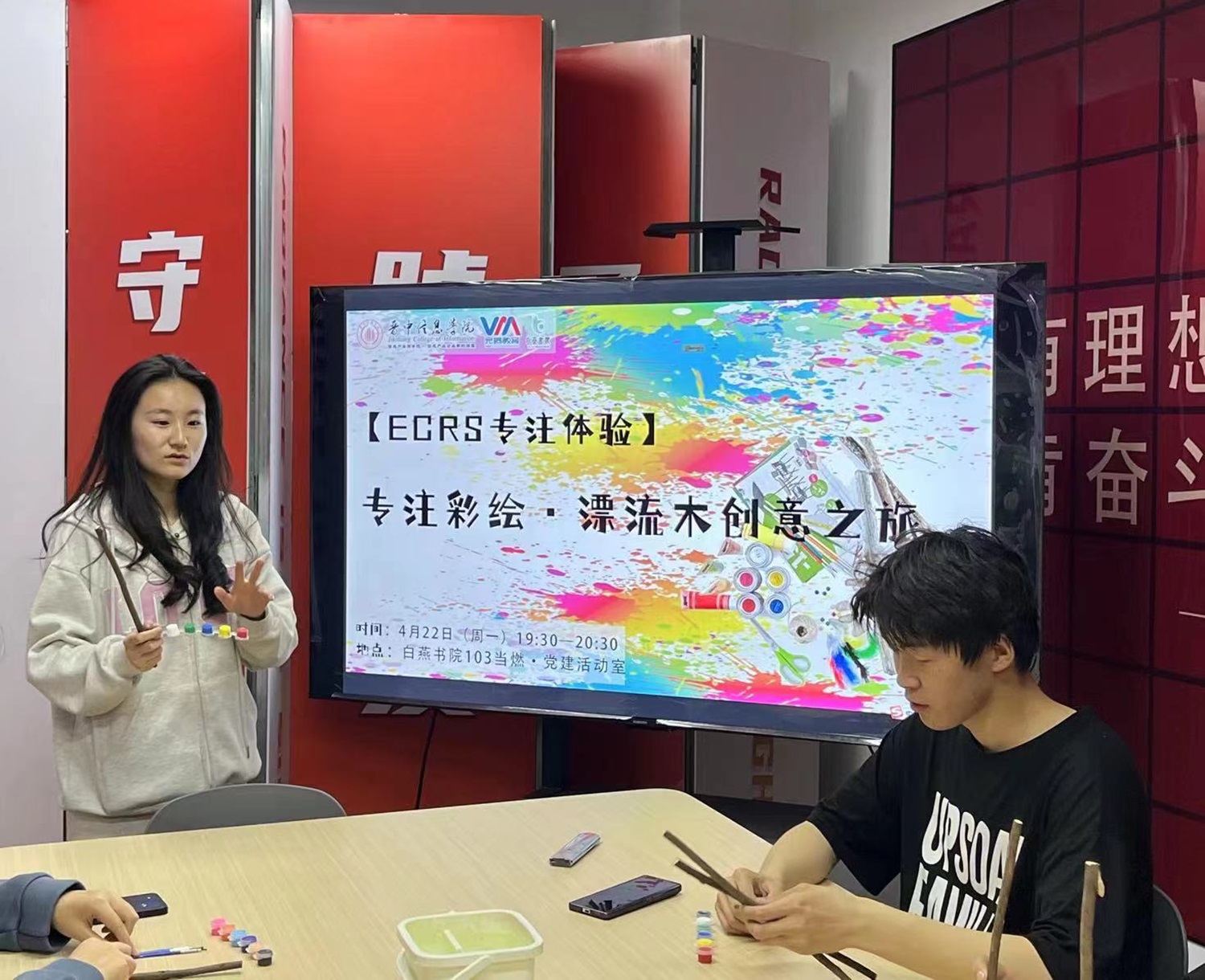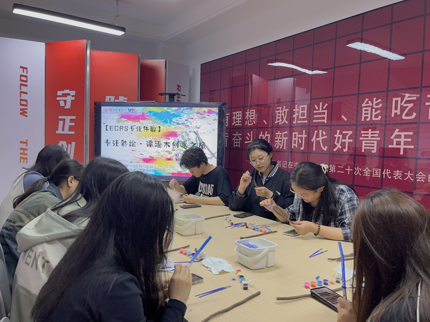 在春日的微风中,邀请同学们一起踏上一段充满创意与灵感的旅程,让同学们感受艺术魅力,在动手制作中提升他们的专注力,来一次融合自然之美,艺术之韵与专注之力的独特体验。4月22日20:00白燕书院于103当燃·党建活动室开展【ECRS专注体验】第6期:专注彩绘·漂流木创意之旅创意之旅主题活动。通过开展漂流木彩绘活动,可以让同学们将全部注意力集中在手中的漂流木和画笔上,从而达到提高同学们的专注力。