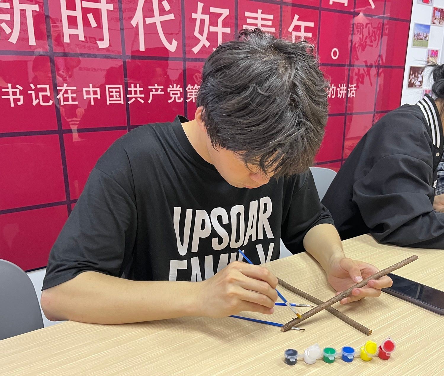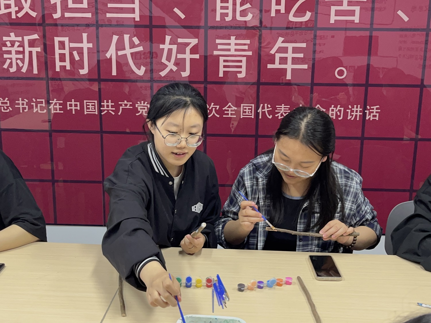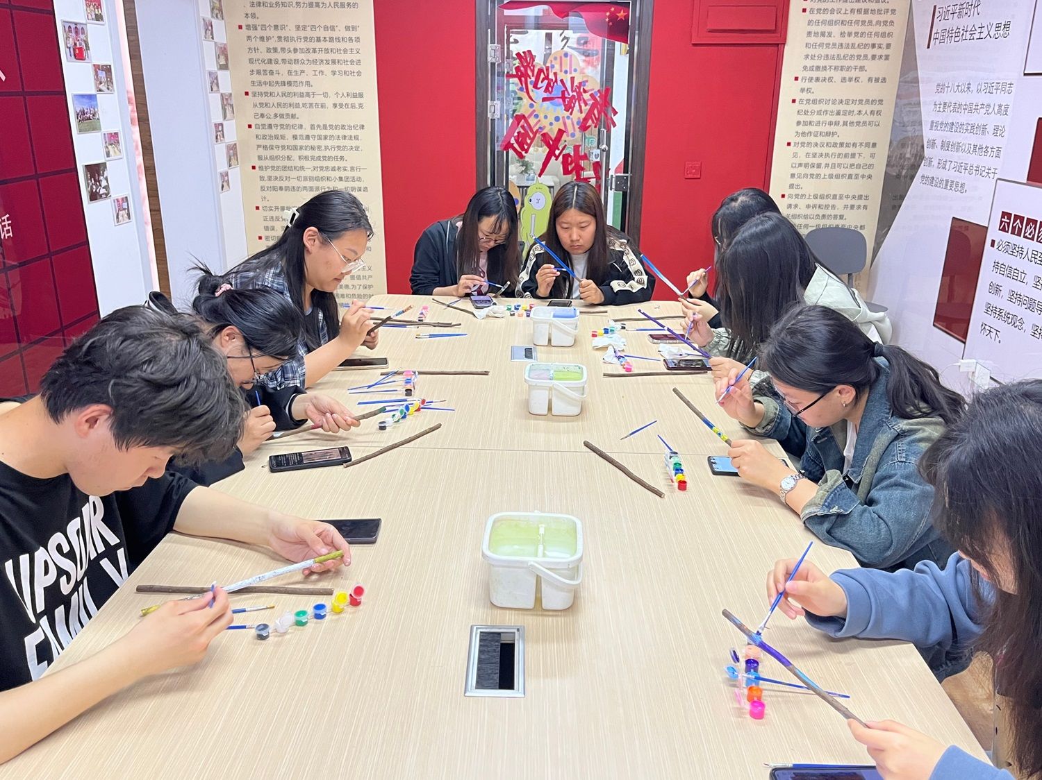 活动伊始,项目服务部副部长梁路德为同学们讲解了这次活动的内容与步骤,随后建议同学们在网络上寻找一些精美的图片来进行模仿实践。讲解完毕后,同学们纷纷投入到实践之中,他们手持画笔,仔细观察木材的纹理和颜色,思考着如何运用色彩和线条来展现独特的美感,他们的笔触流畅而有力,每一笔都充满着对艺术的热爱和对专注的体现,经过同学们的努力,不仅将这些木棍变成了艺术品,让它们重新焕发光彩。