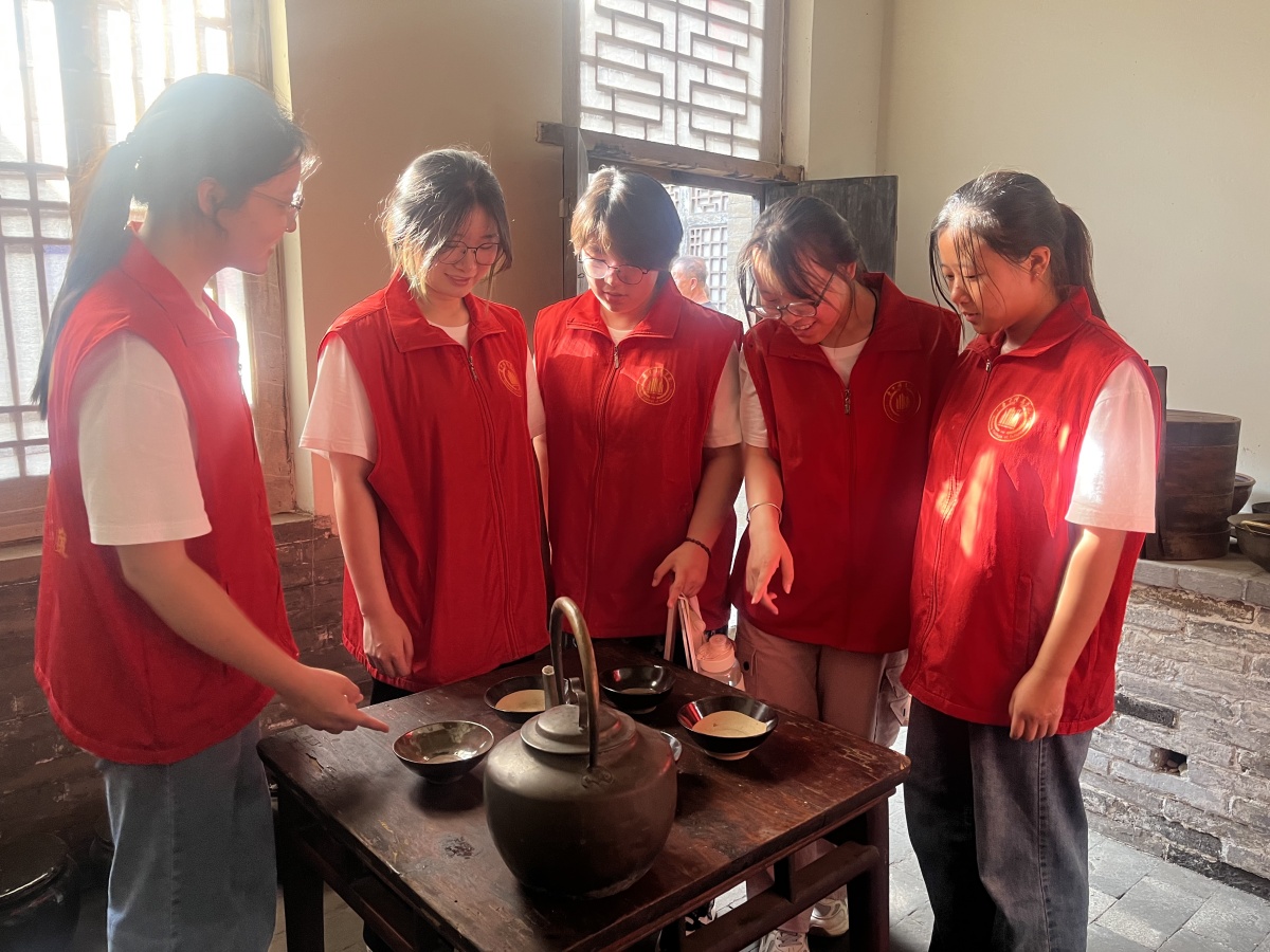 穿梭在大院各式的房间里,传统陈设一一呈现在眼前,炕、老式洗漱台、书桌等老物件,带着岁月包浆,还原过去的起居日常;桌上算盘、琴棋书画有序摆放,古筝静静伫立,真正地体会到古人“雅俗相济、诗书传家”的生活意趣。剪纸将民俗故事、吉祥纹样刻于红纸之上,栩栩如生;马勺漆画挂于墙间,质朴马勺为底,绘上戏曲人物、传统图案,色彩浓郁,传递着古老民俗韵味;漆扇的扇面经漆艺点缀,尽显色彩之美。从历史服饰到非遗技艺,从传统起居用具到独特建筑,同学们在毛家大院触摸历史纹理,感受文化传承。此次活动,不仅是一次视觉与知识的盛宴,更让大家对本土历史文化有了深刻认知,激励着青年一代传承与弘扬传统文化,让古老记忆在新时代焕发光彩。