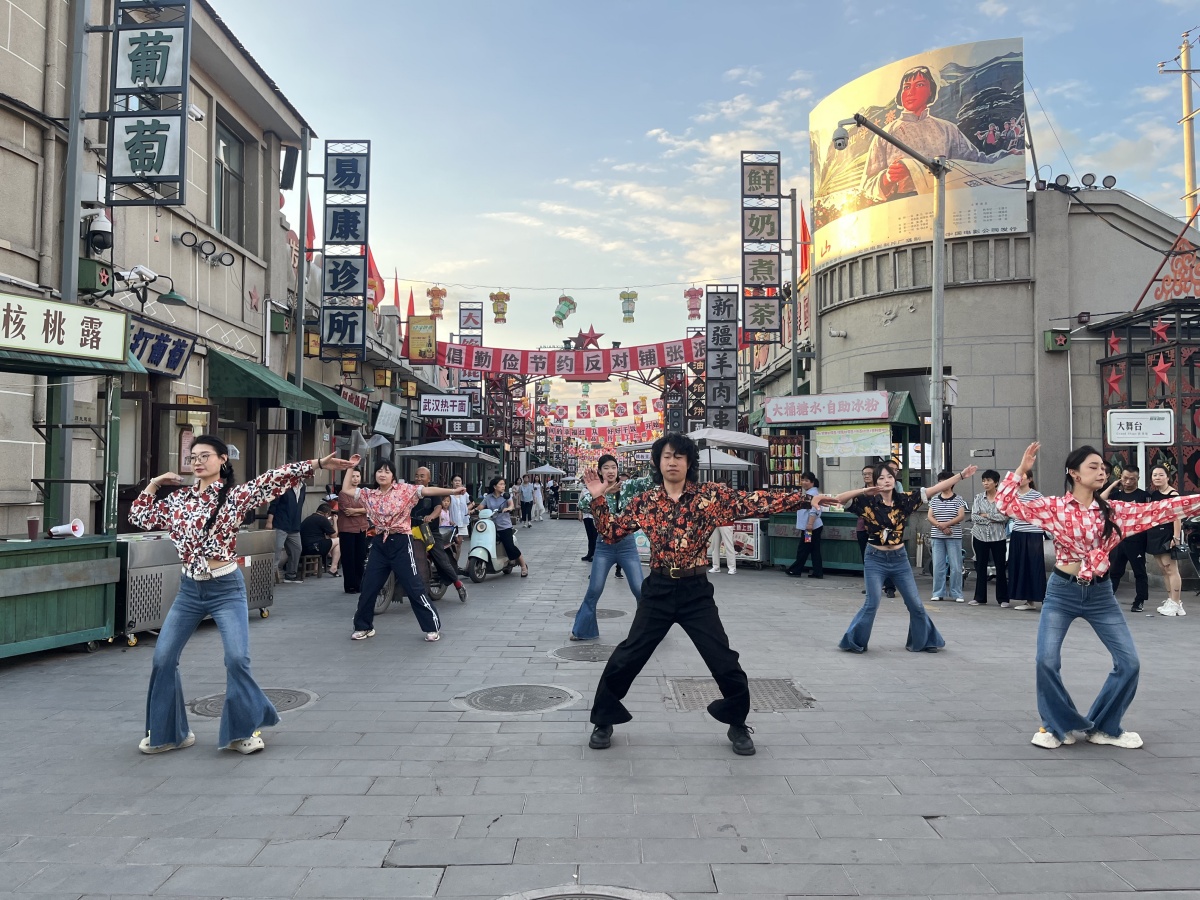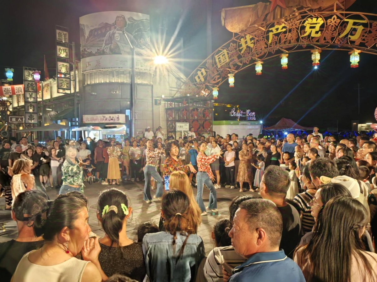 忽然有歌声漫来,港式舞曲混着老歌,穿街走巷。那边修鞋摊的师傅激动地跳着舞,这边织毛衣的阿姨飞着手里的棒针,生动地呈现出过去生活的片段,增添新场景。街道两侧还有古商铺提供的特色美食,如昔阳压饼、炸油果等。红旗一条街凭借独特复古氛围、精彩的情景演艺与特色美食,成为怀旧体验热门地。燕栖云宿乡村振兴促进团成员们在这儿吃着压饼看着表演,听着手风琴哼老歌,沉浸式体验了一把爸妈的青春时代!