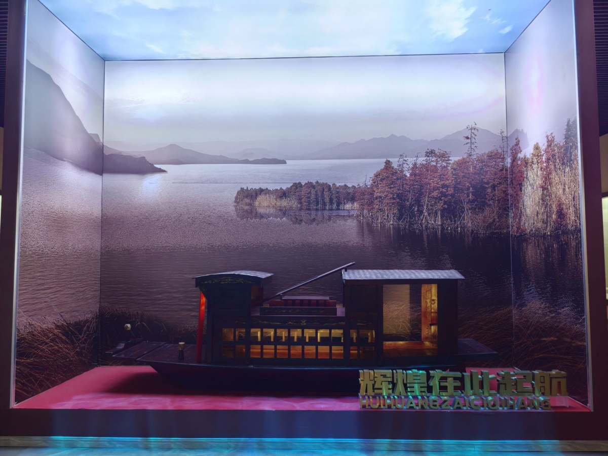 接着,成员们看到云南省南华县革命委员会在1969年来大寨学习送来的礼物——《英雄的大寨人》,还了解到了瓷器从元代到明清时期的丰富演变。为凸显大寨人在艰苦的环境中自力更生、艰苦奋斗的精神,昔阳博物馆特别打造了中共一大召开地——嘉兴南湖红船的模型。红船的展示,不仅丰富了展览的内容,更生动体现出昔阳人民在中国共产党领导下,传承红色基因,发扬优良传统,不断拼搏进取的精神风貌 。