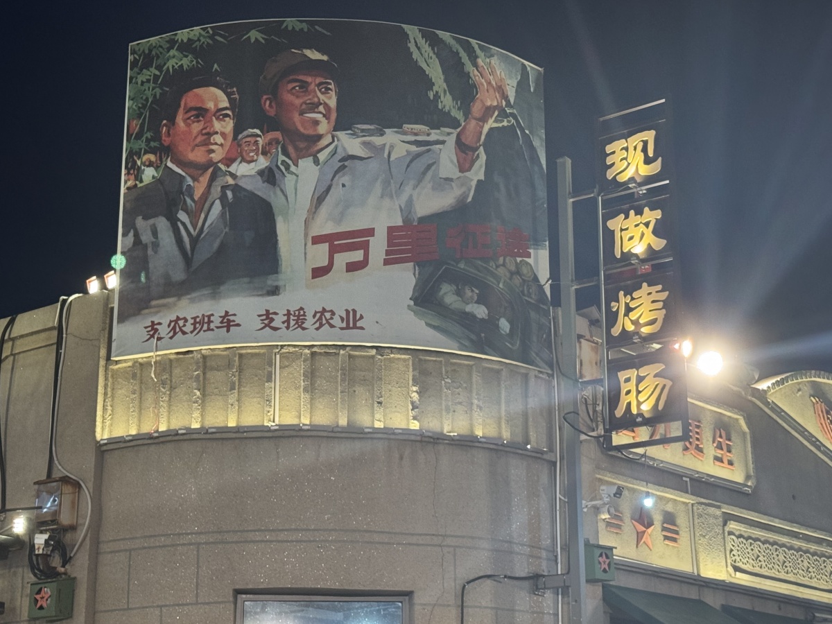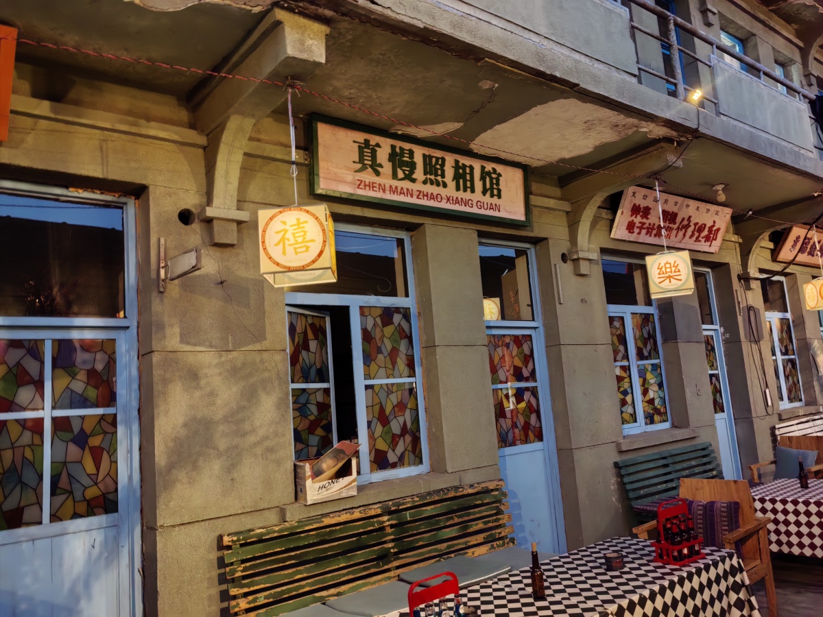 走进昔阳县红旗一条街,开启一场沉浸式怀旧之旅,感受七八十年代独特的风情。踏入这里,一台网红怀旧大电视率先映入眼帘,瞬间将人们拉回那个充满故事的年代。街道两边建筑极具特色,清一色水泥的墙体、斑驳对开的木门,满是七八十年代的生活印记;房顶的花边、墙面的五角星,还有些带着烟火气的标语,字里行间都是“奋斗”“热爱”的温度,为老街增添生气与时代感。相较于明清风格古城,多了几分真实与亲切。不仅如此,这里还打造了丰富的复古场景,“手风琴乐队”“人民电影院”“国营照相馆”“中式婚宴”“教室”等,每个角落都散发浓厚的年代气息。大家穿梭其中,参观复古场景,仿佛穿越回充满激情与梦想的往昔。
