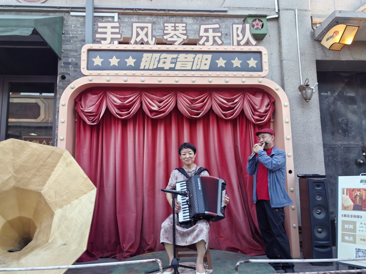 刚进街就被老式电视吸引住了,跟老爸照片里的一模一样。手风琴声飘过来时,正咬着刚买的压饼,脆得掉渣。织毛衣的阿姨抬头笑:“这花样,当年你妈说不定也织过。”走着走着突然就懂了,这不是摆出来的“复古”,而是爸妈嘴里“热热闹闹过日子”的模样。