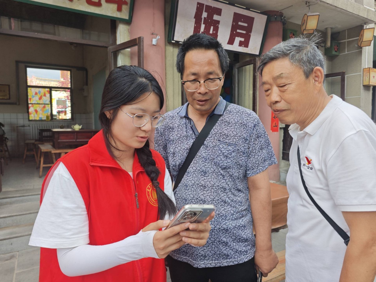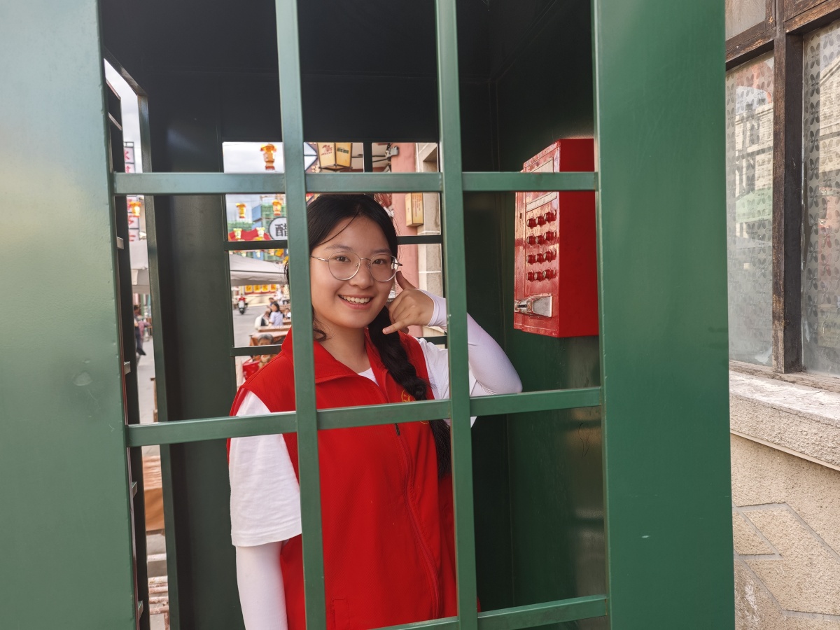 走到复古“照相机”模型前,张丽清同学跑着想要上前拍照打卡,李爷爷慢悠悠放下手中的茶杯,笑着揭开岁月谜底:“这是咱老街特意留的老物件,就盼着你们年轻人来这儿!”他布满老茧的手轻轻摩挲模型外壳,声调带着几分感慨,“这里曾是县城核心,热闹得很!后来为助力乡村振兴、激活旅游活力,老街特意复原成七八十年代的风貌,让咱这些老居民守着根,也让年轻人能摸到历史的边儿。” 一砖一瓦、一店一物,皆成叩响时光的门环,将众人拽入往昔洪流,沉浸式感受岁月流淌的痕迹。