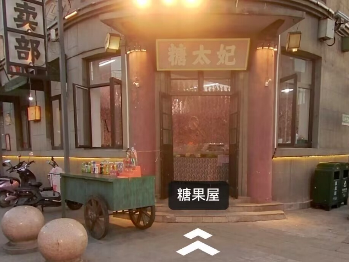 踏入红旗一条街,古建门楼先撞进视野,飞檐翘角衬着蓝天。行至礼趣拾光门口,巨型古风人偶立在粉花旁,老建筑墙面上的红字标语和眼前鲜活的打卡装置奇妙交融。转过拐角,“糖太妃”店铺暖光晃眼,绿推车堆着饮料,旧时光的甜香仿佛从石墙缝里漫出来。一踏入糖果屋,满墙糖纸拼成的绚丽图案、悬垂的粉色装饰,把街巷的质朴烟火,切换成梦幻甜趣的另一番天地,随着设备转动镜头,把街道画像都装进数字档案里。