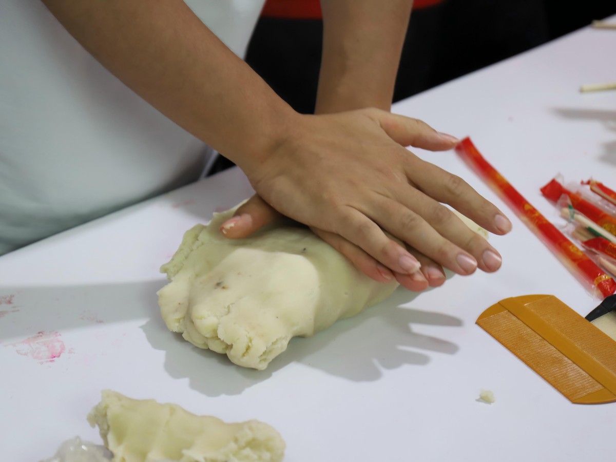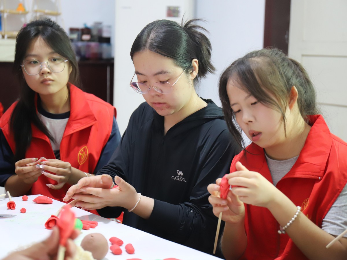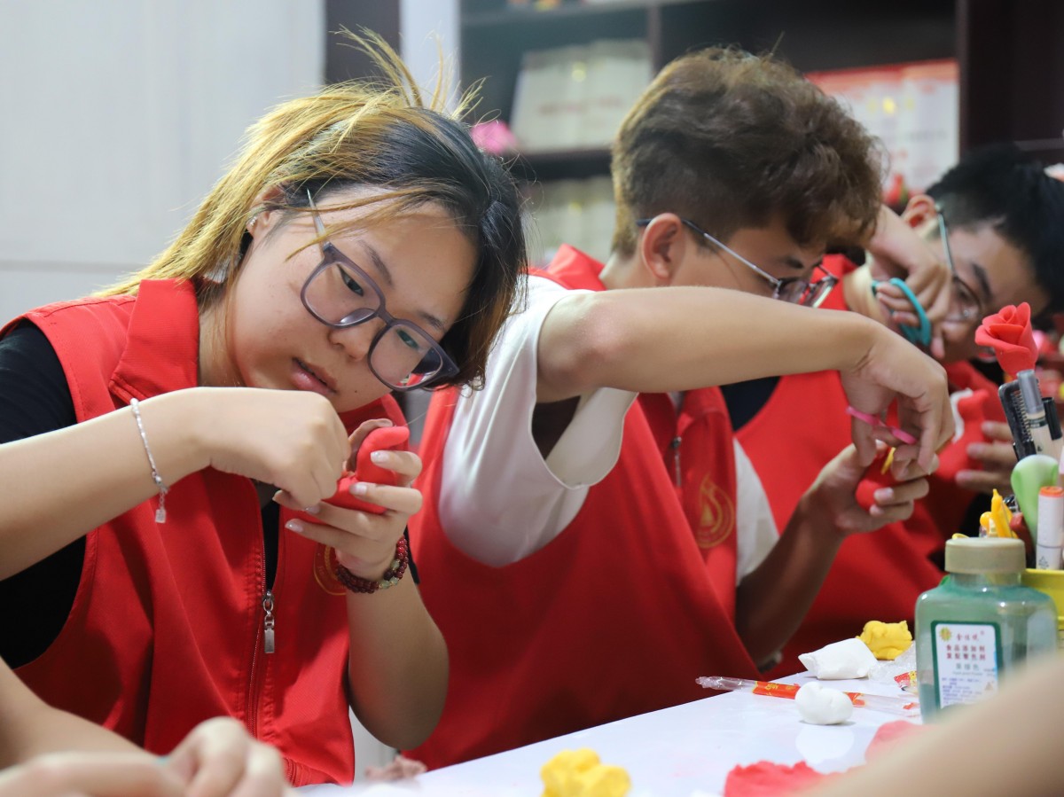 带着这份认知,促进团成员们开始了期待已久的实践。揉捏、塑形、剪切、拼接,看似简单的动作实际操作起来却充满挑战。促进团成员们专注地模仿着老师的手法,努力将手中的面团塑造成心中所想。经过一番努力,形态各异的作品逐渐成形:有昂首奋蹄、象征进取精神的骏马;也有层叠绽放、传递美好祝福的玫瑰花。大家在亲手铸就的作品里表露出满满的成就感,每一寸细节都晕染着创造的喜悦与自由。