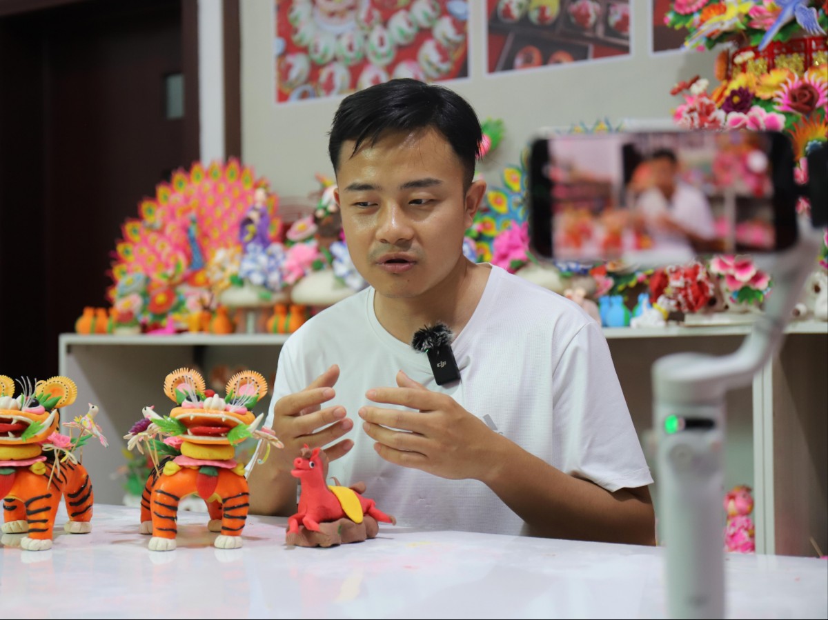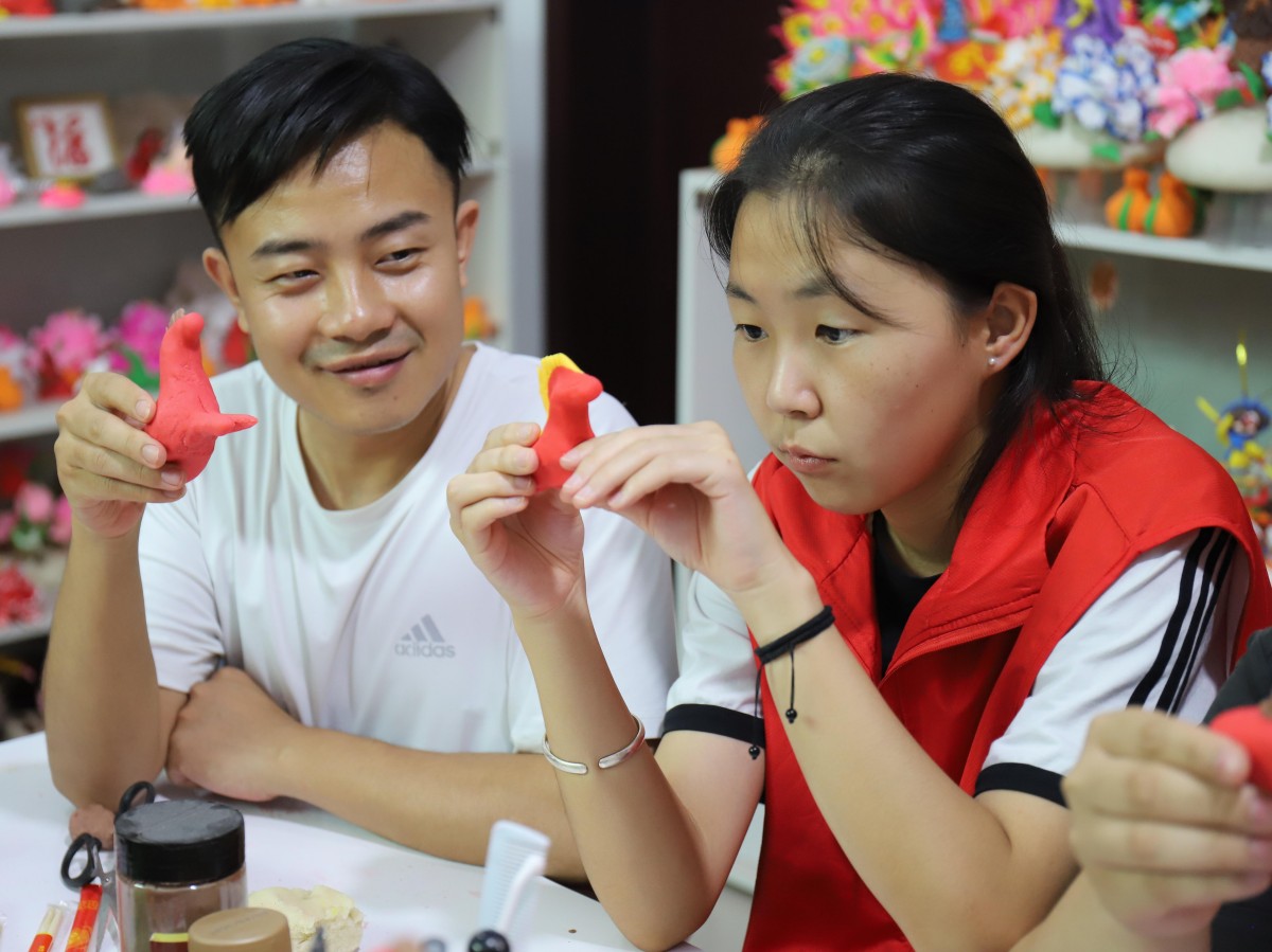 李老师向促进团分享了他的非遗传承心得:“要让千年花馍活在当下,必须与时俱进。”他创新打造的“哪吒闹海”系列,将传统面塑与现代动漫完美结合。谈及传承困境,他表示:“复杂作品需数日雕琢,但年轻人更追求即时收益。”为此,他开创“非遗+”模式:开展文旅体验项目、举办公益培训,更吸引了不少大学生加入传承队伍。