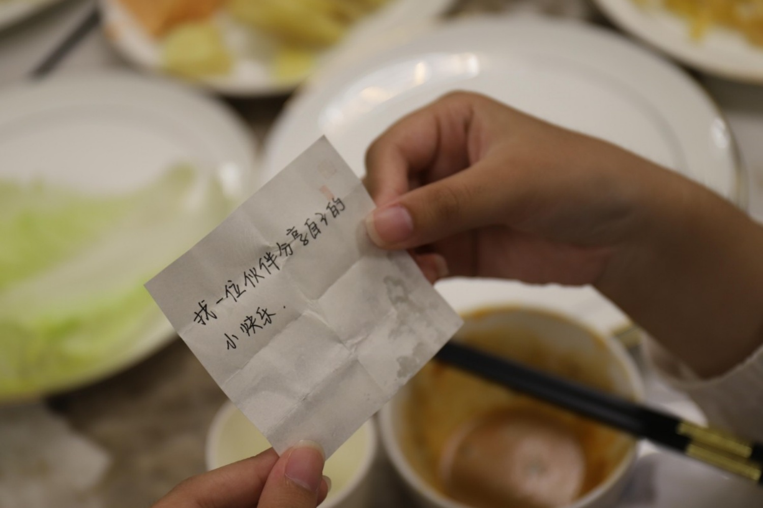 在主持人王璇热情开场后,书院发展导师侯琪、程文熙与新生们围坐共餐。起初气氛略显生疏,但随着火锅沸腾,师生间边吃边聊,分享趣事与憧憬。现场逐渐充满欢声笑语,氛围变得热络而亲近。在活动期间,特别设计的“插盲盒任务·轻互动”趣味环节成为了整场活动最引人注目的亮点之一。上河书院精心准备了数十个色彩缤纷的盲盒,每个盲盒内都藏着一张写有简单而温馨游戏的纸条。