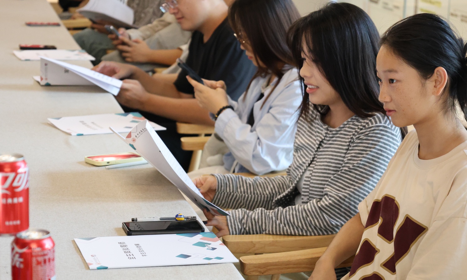 这次异科见面会让我收获满满,全程都很有温度。刘阳老师先是给每个人分发了学生成长手册,还特意叮嘱我们填写时的注意事项,怕大家饿或渴,早就备好了各种零食和饮品。之后为了让大家更快熟悉,老师组织我们玩抓鸭子游戏,输的同学要做自我介绍,在笑声中,我们轻松相识,一点都不尴尬。