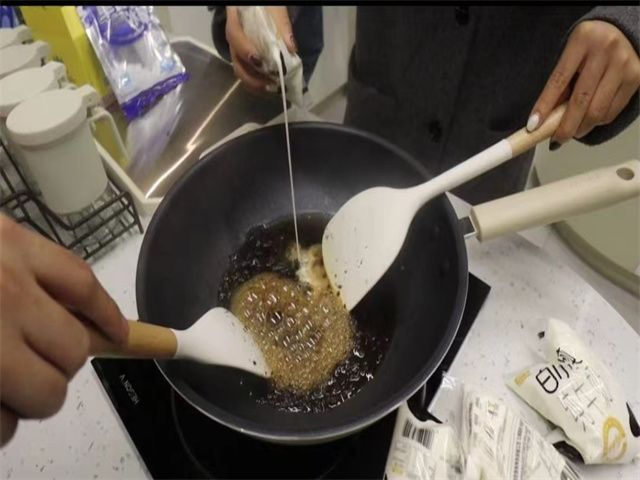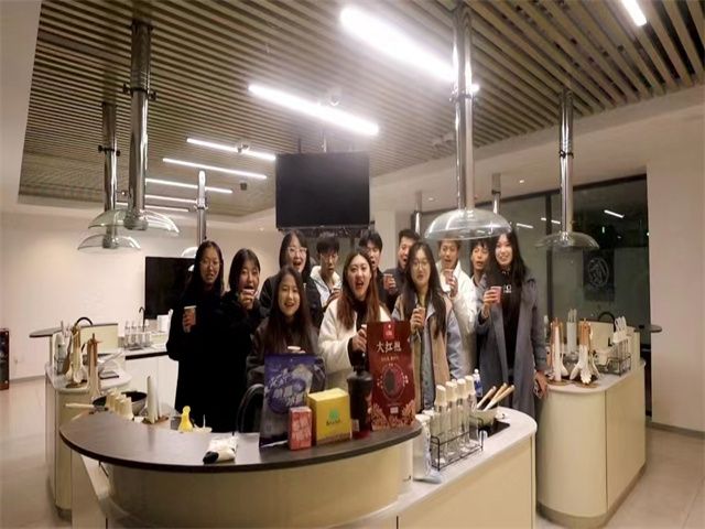 在比赛后期,团队成员进行了实践活动,在薄一帆老师的指导下自己动手做独特的奶茶,成员们积极参与,炒糖色、炒茶叶,将牛奶与之充分融合起来并搅拌;并进行煮沸、过滤,成员们品尝着自己动手做的奶茶,更加深刻地感受到了中华优秀非物质文化艺术的独特。