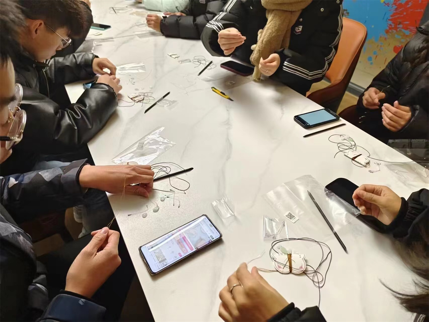 同学们兴奋又热情地将自己的作品向大家分享,迫不及待地想要展示自己的劳动成果。每件作品的风格各异,有展翅翩跹的蝴蝶,含苞欲放的铃兰,国风国色的牡丹,精美华丽又不落俗套,将发簪拿在手中,几条流苏垂下,宛如春风拂过湖边的柳条,随手晃动,发出如风铃般清脆的响声。大家对自己的劳动成果爱不释手,如获珍宝。